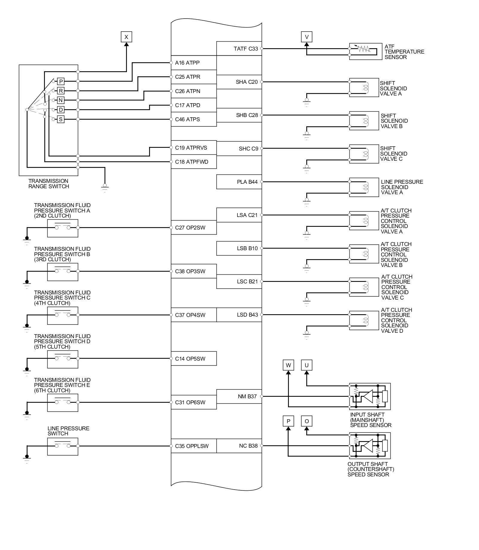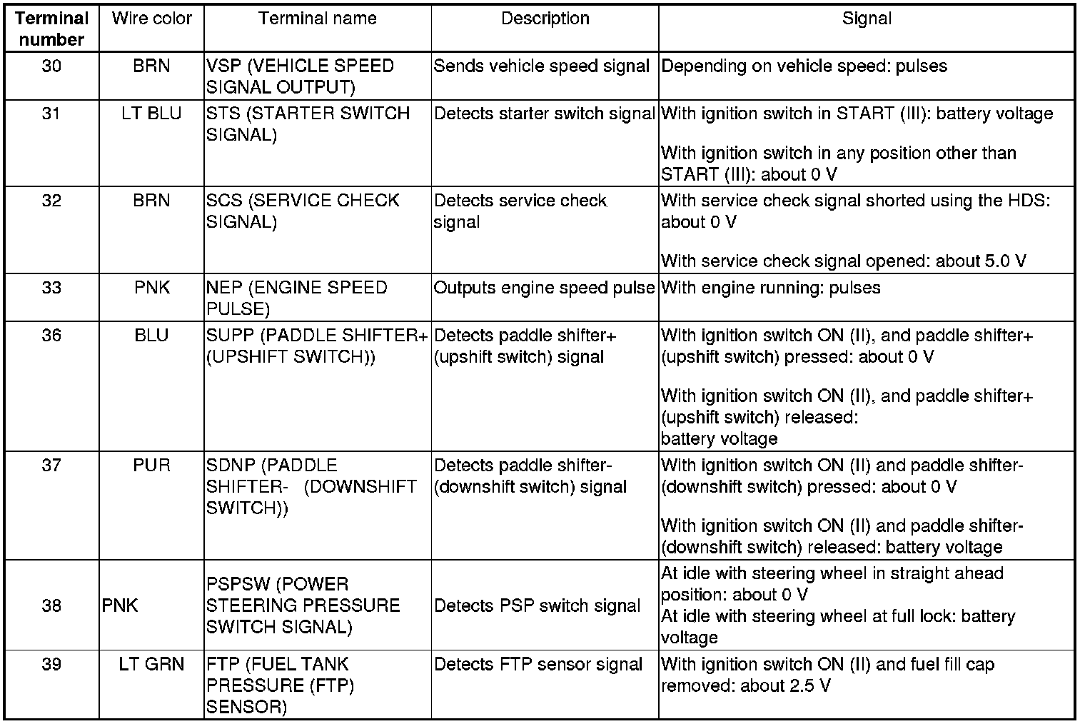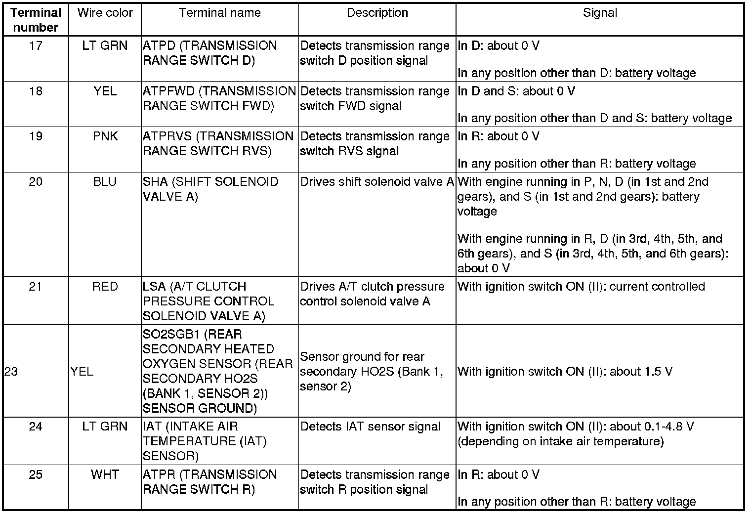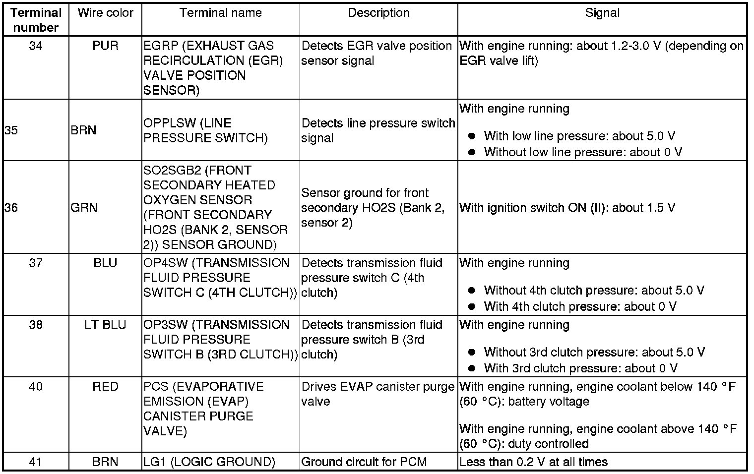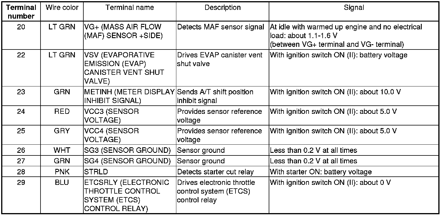 PCM Inputs and Outputs at PCM Connector A (square) (49P)