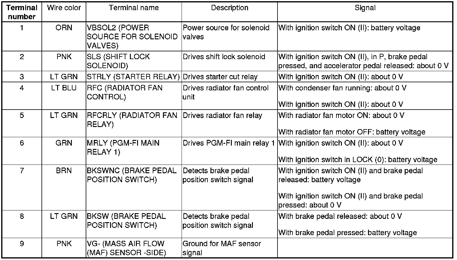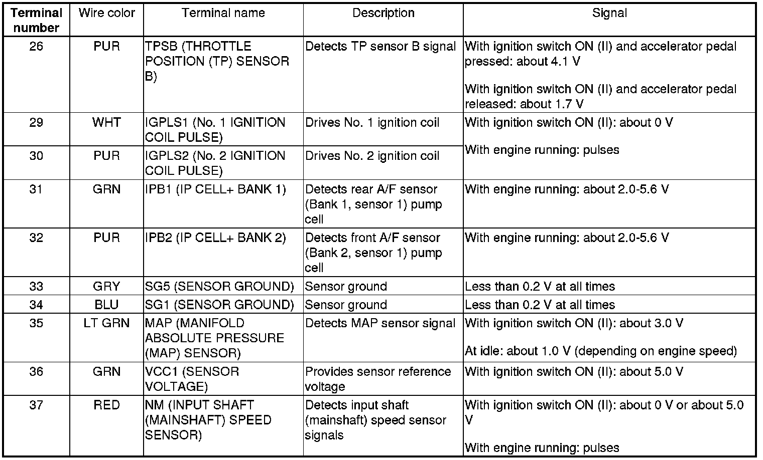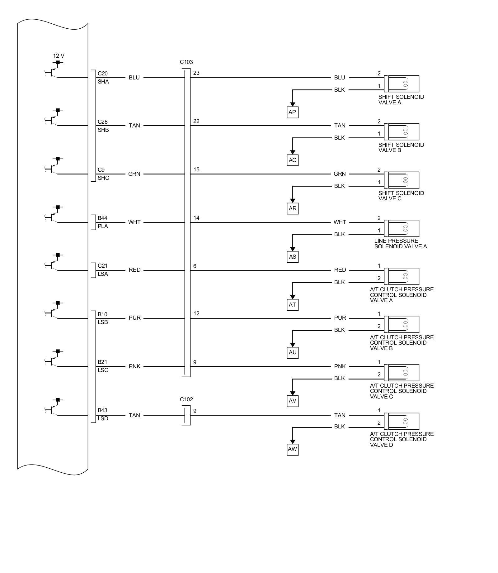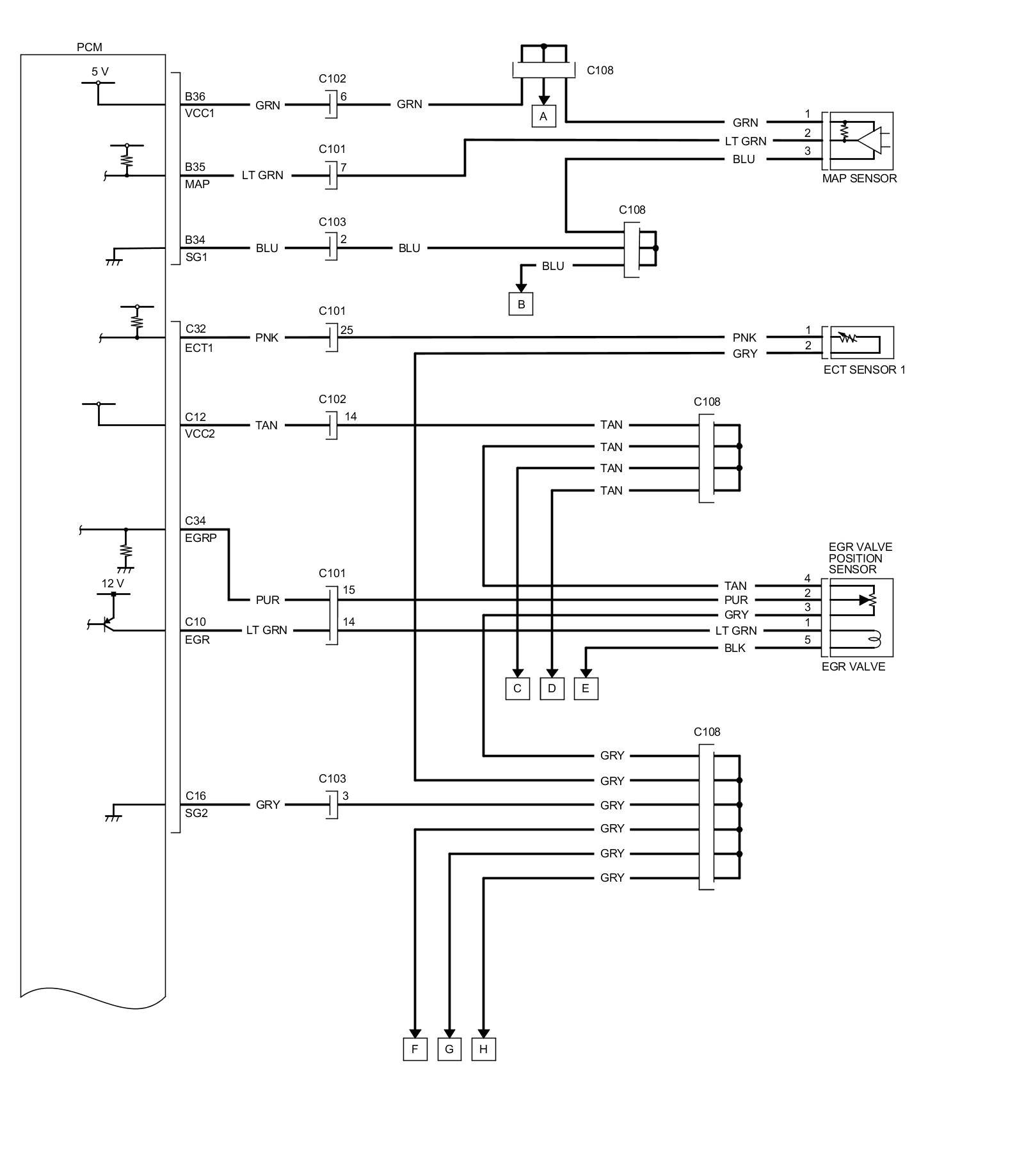 PCM Inputs and Outputs at PCM Connector A (square) (49P)