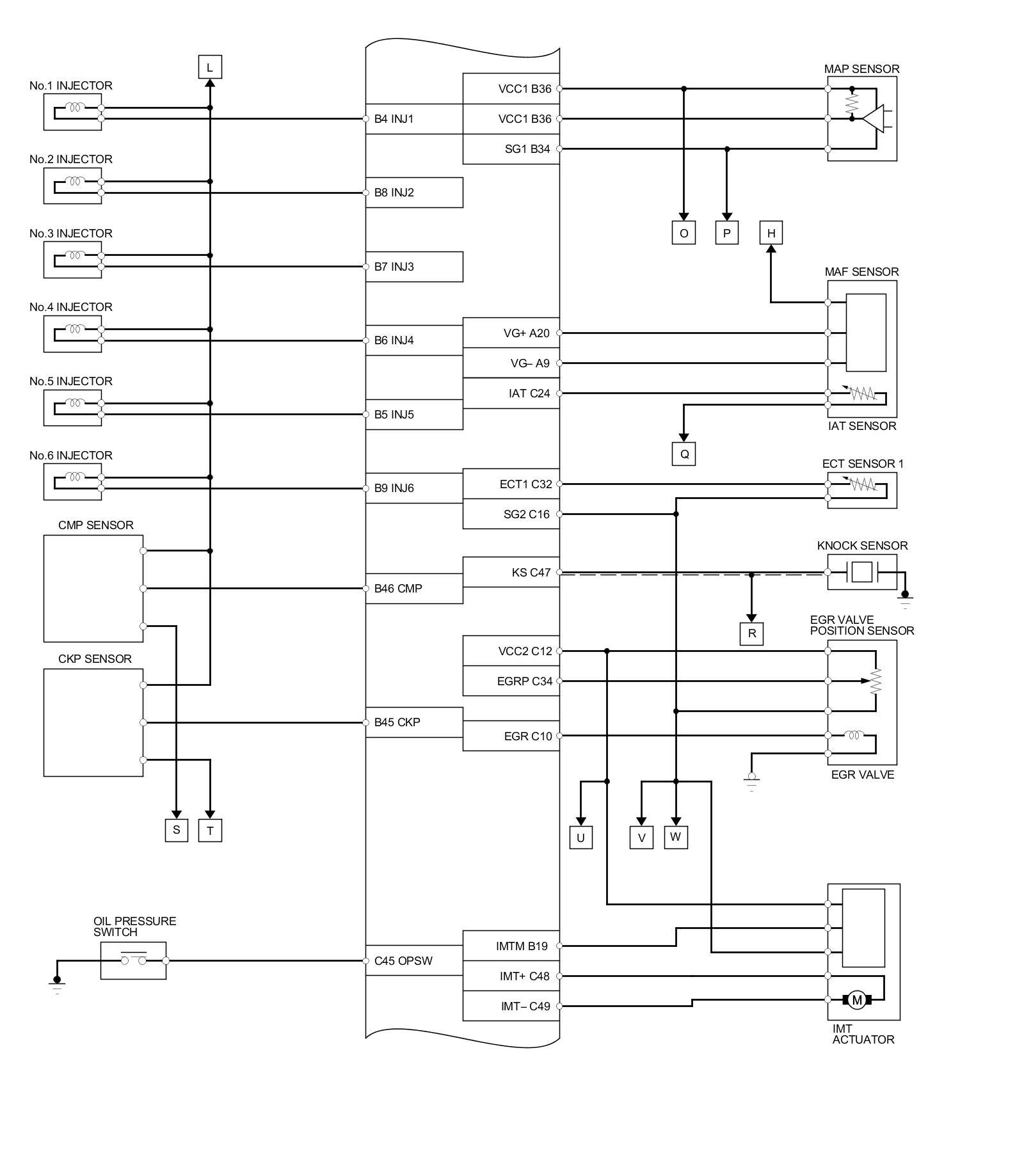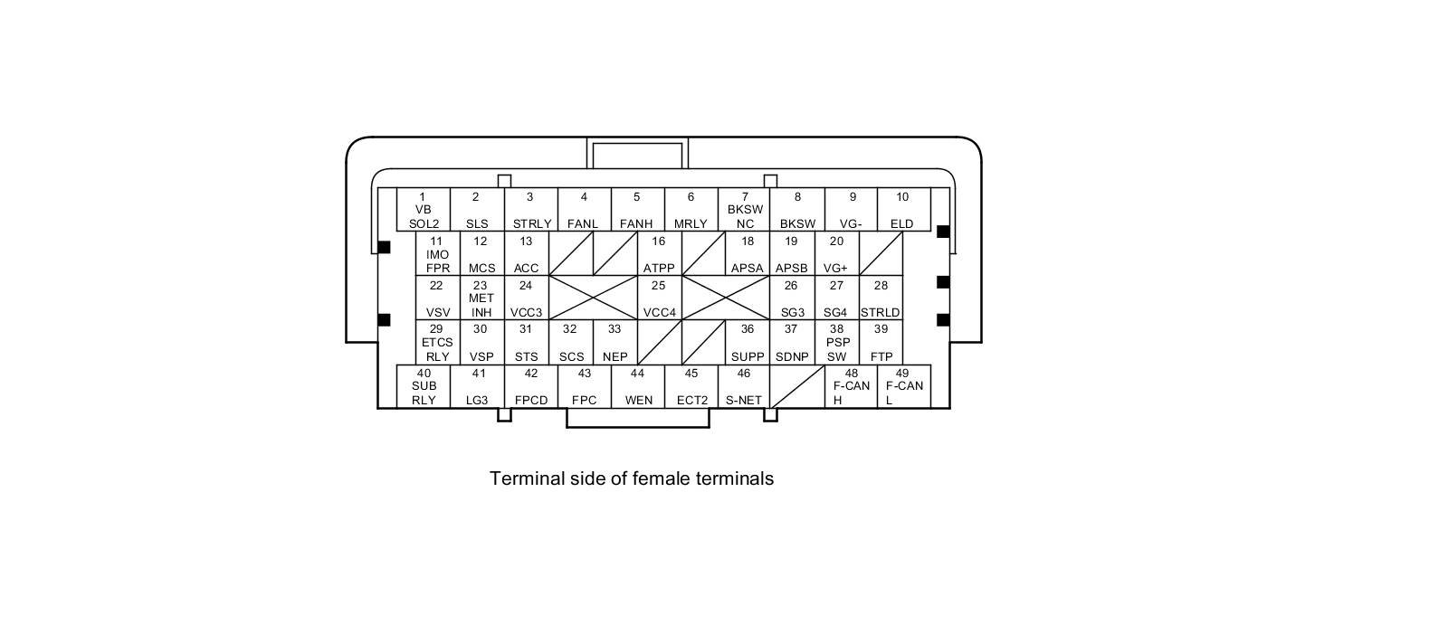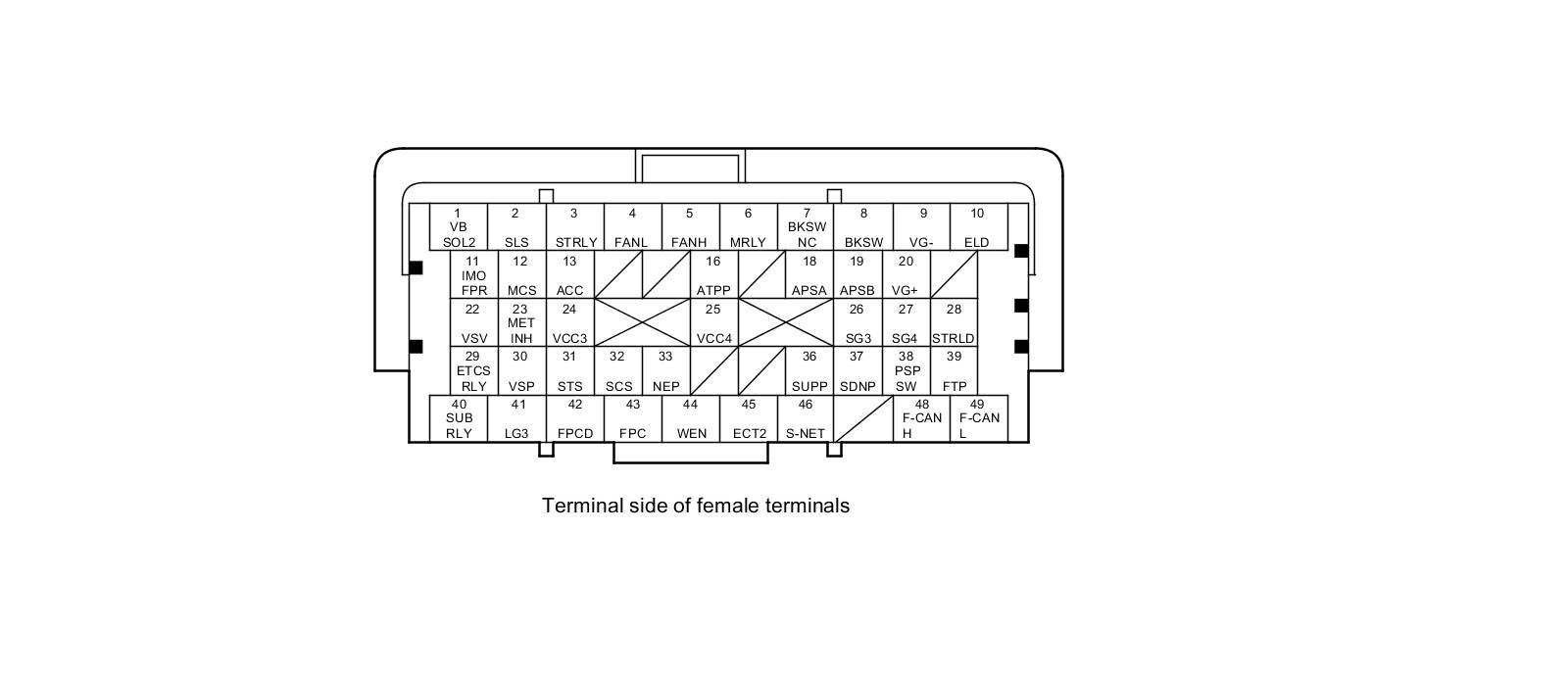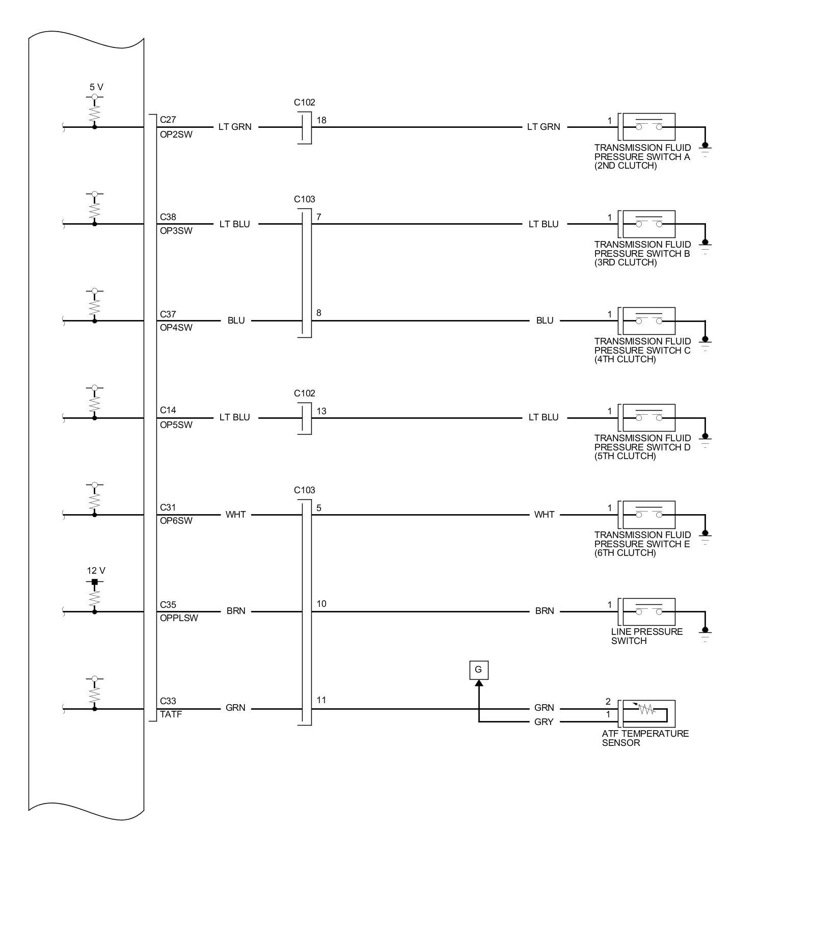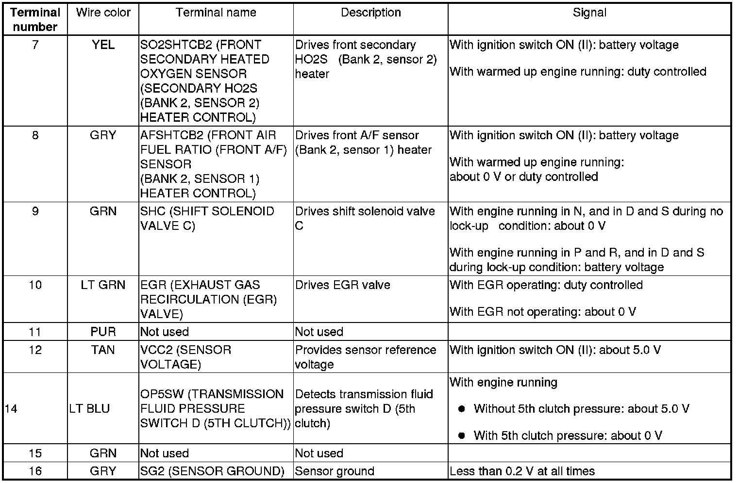 PCM Inputs and Outputs at PCM Connector A (square) (49P)