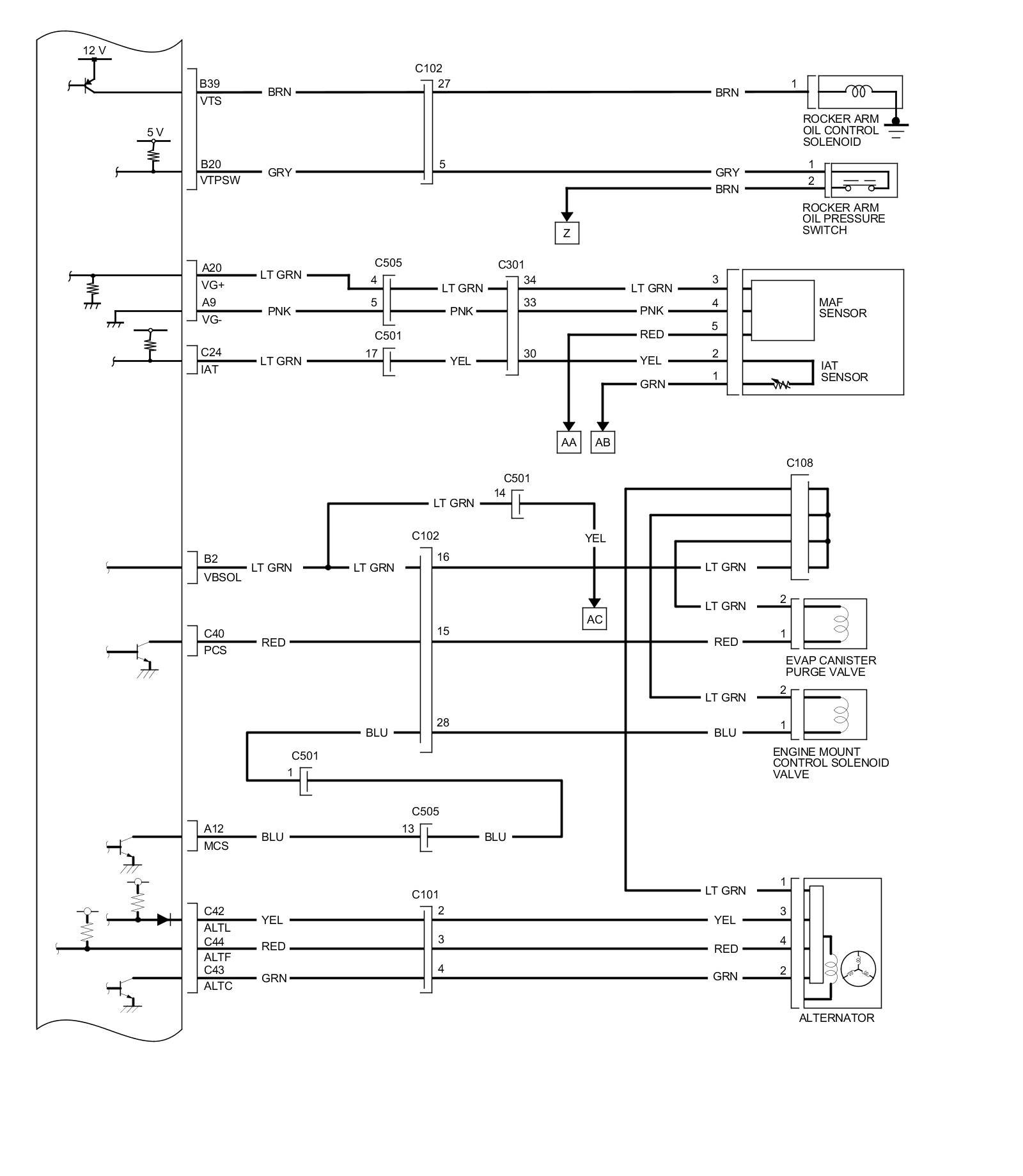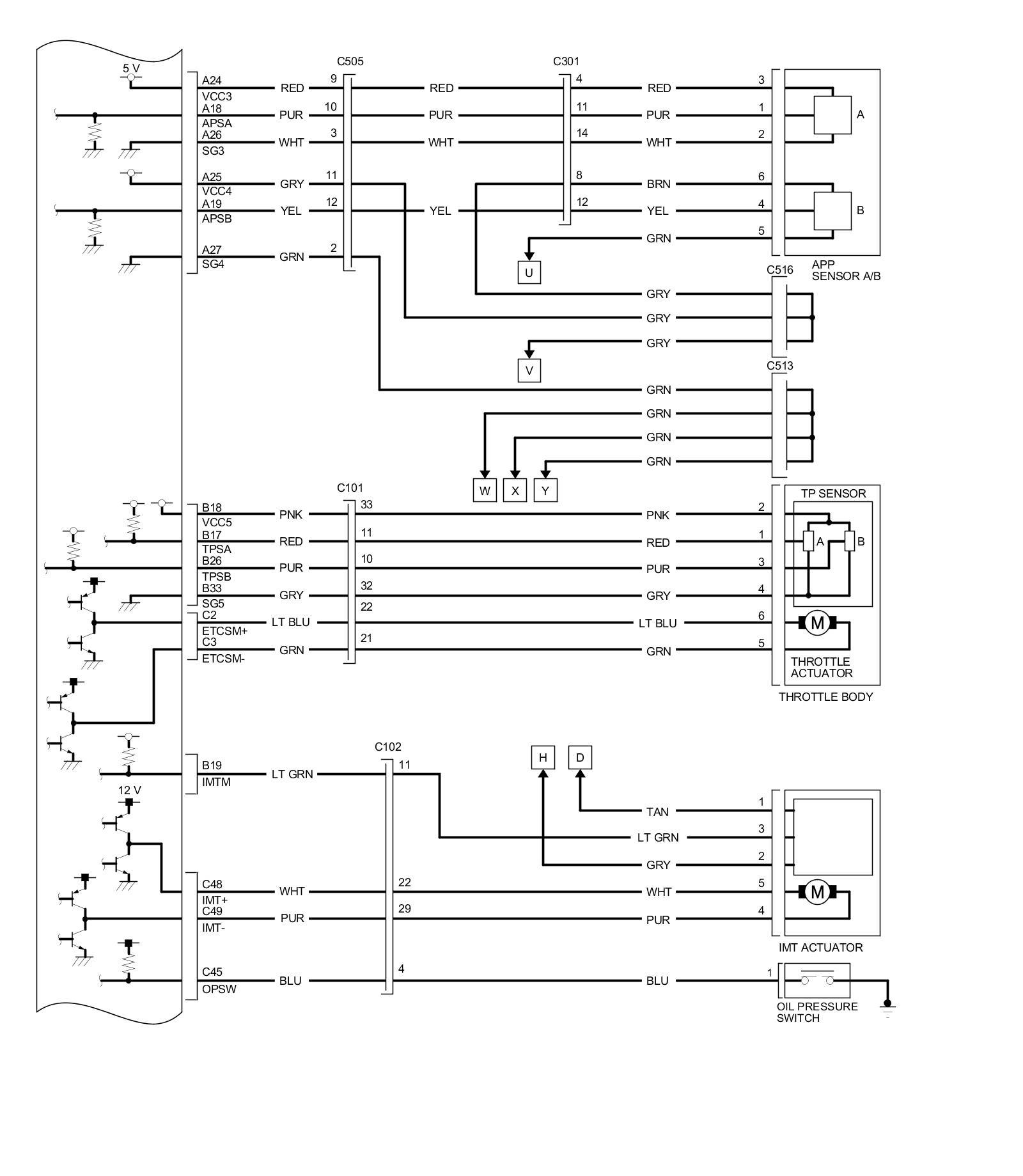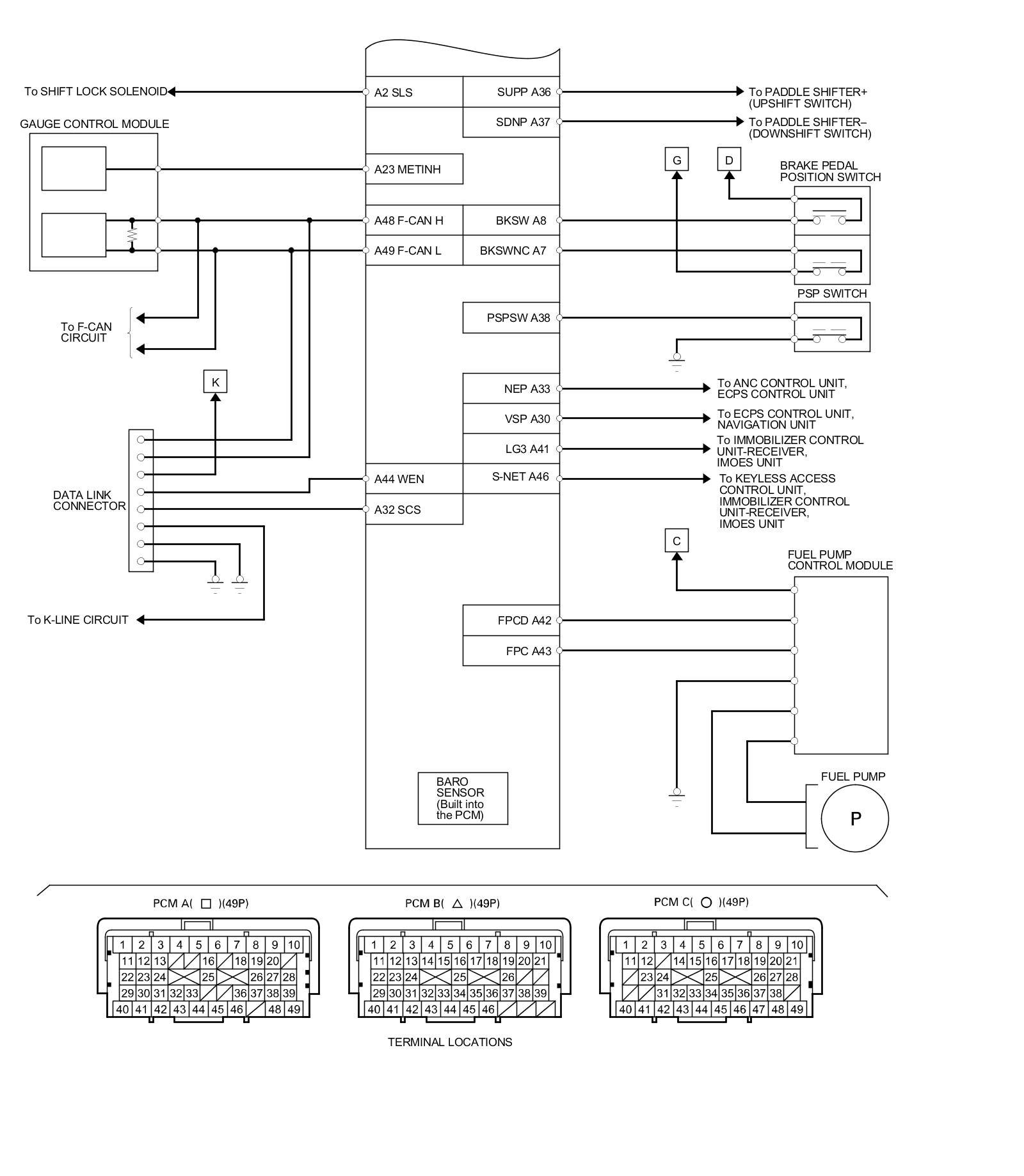 PCM Inputs and Outputs at PCM Connector C (circle) (49P)