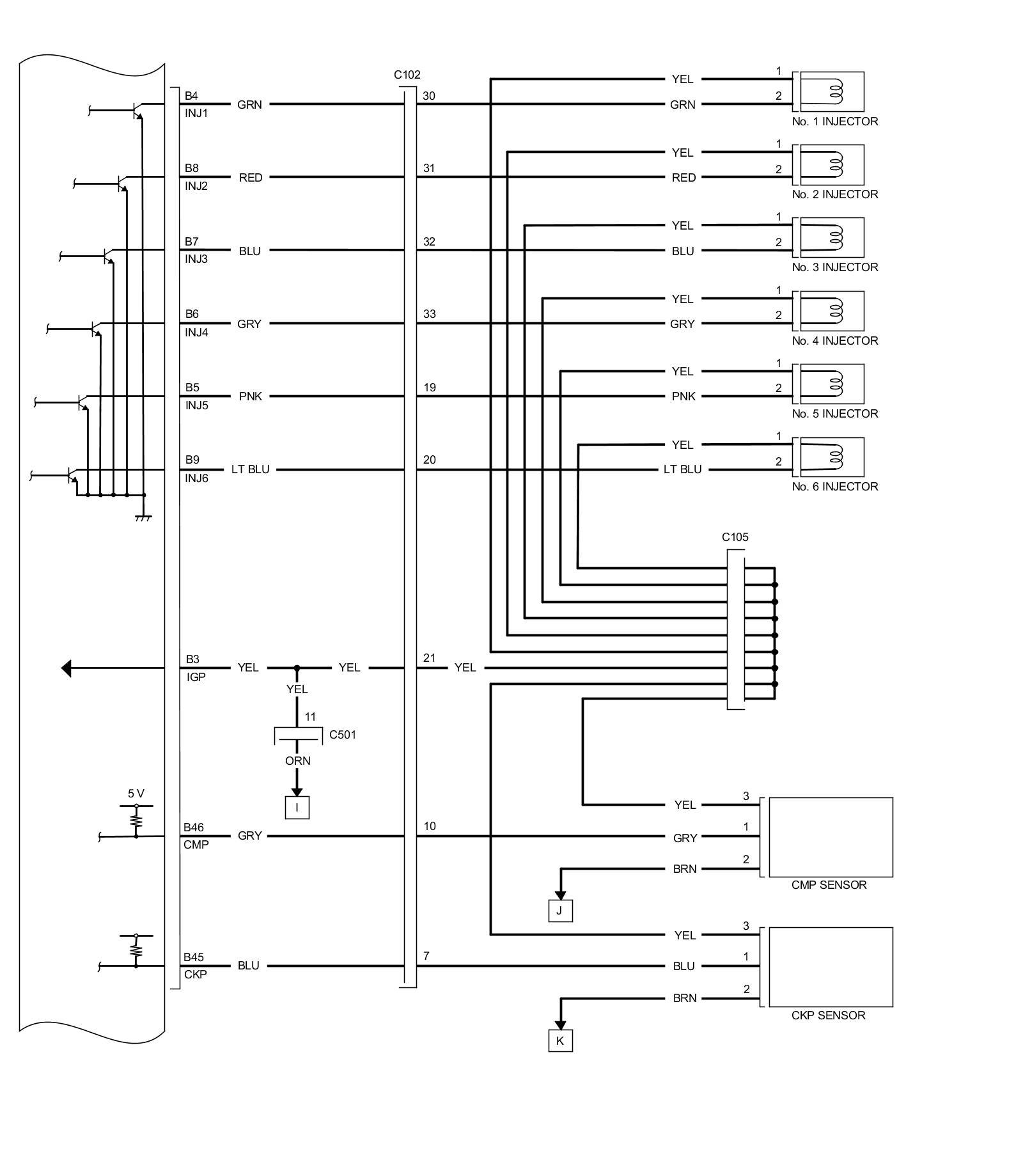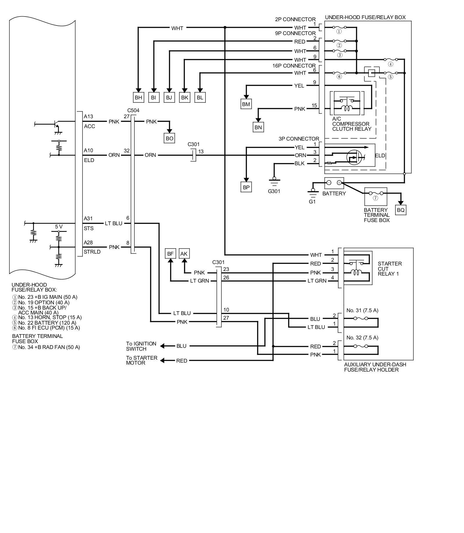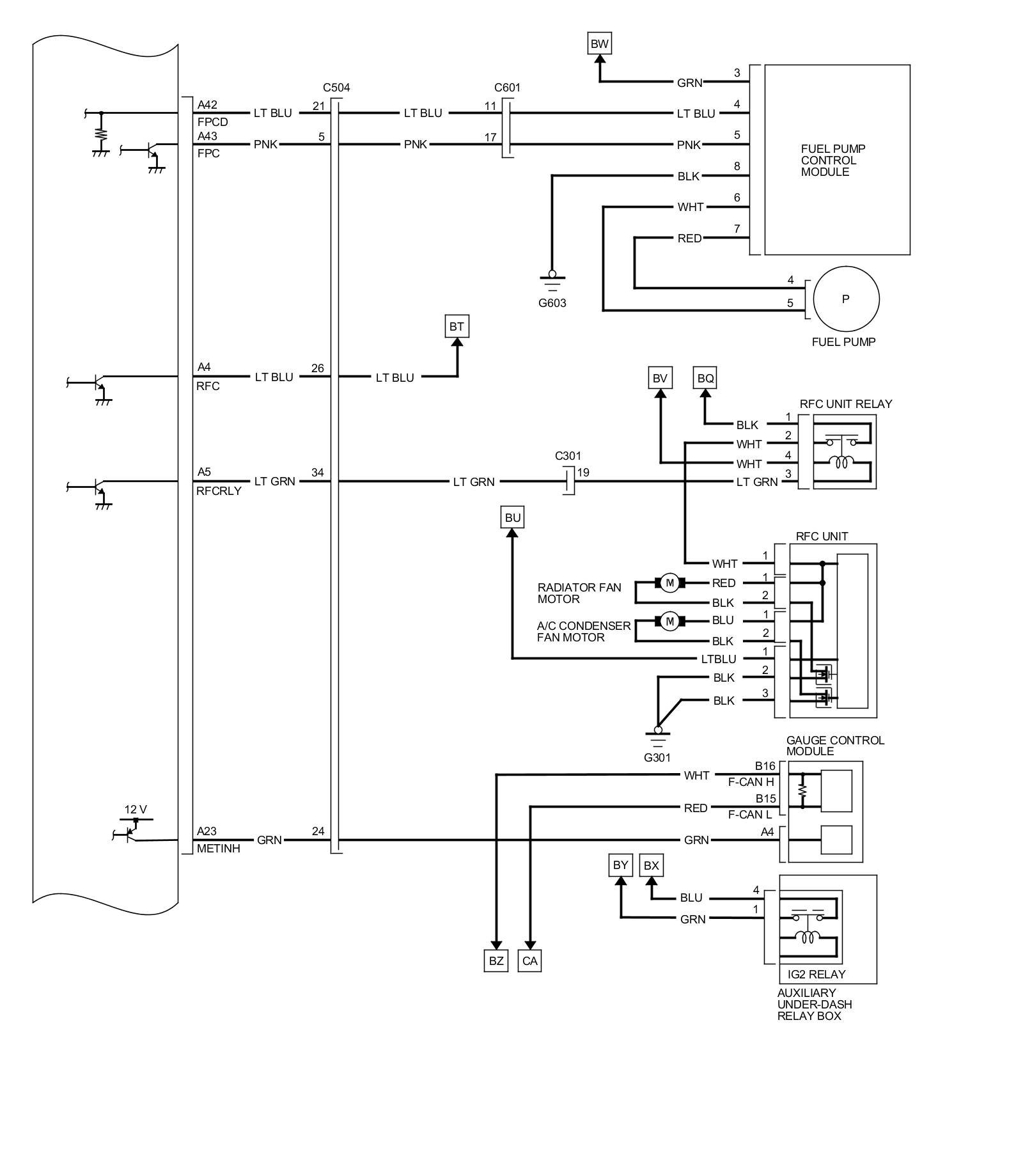 PCM Inputs and Outputs at PCM Connector C (circle) (49P)