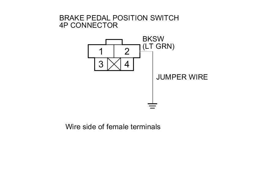 9. Connect brake pedal position switch 4P connector terminal No. 2 to body ground with a jumper wire.