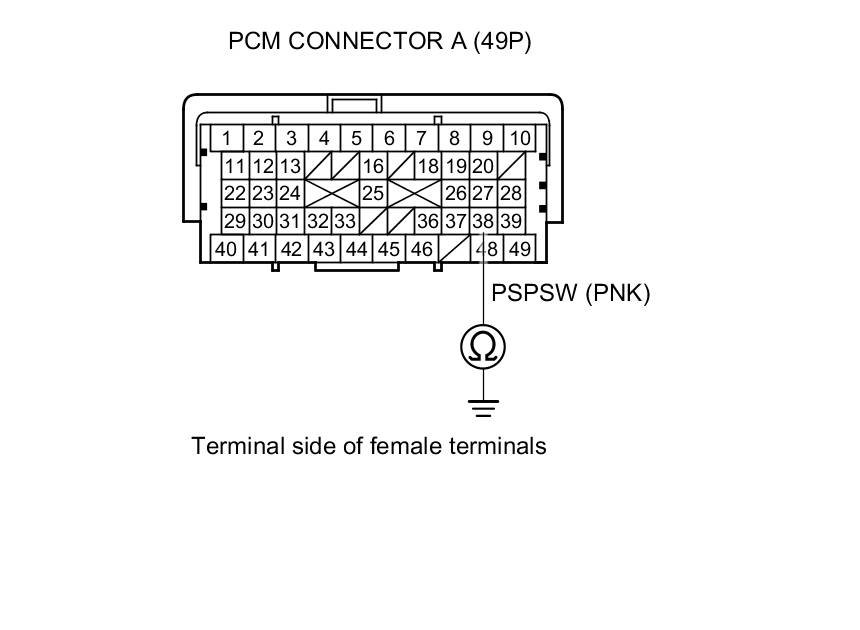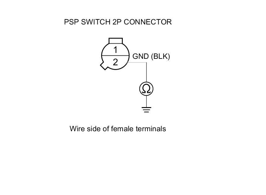 24. Check for continuity between PSP switch 2P connector terminal No. 2 and body ground.