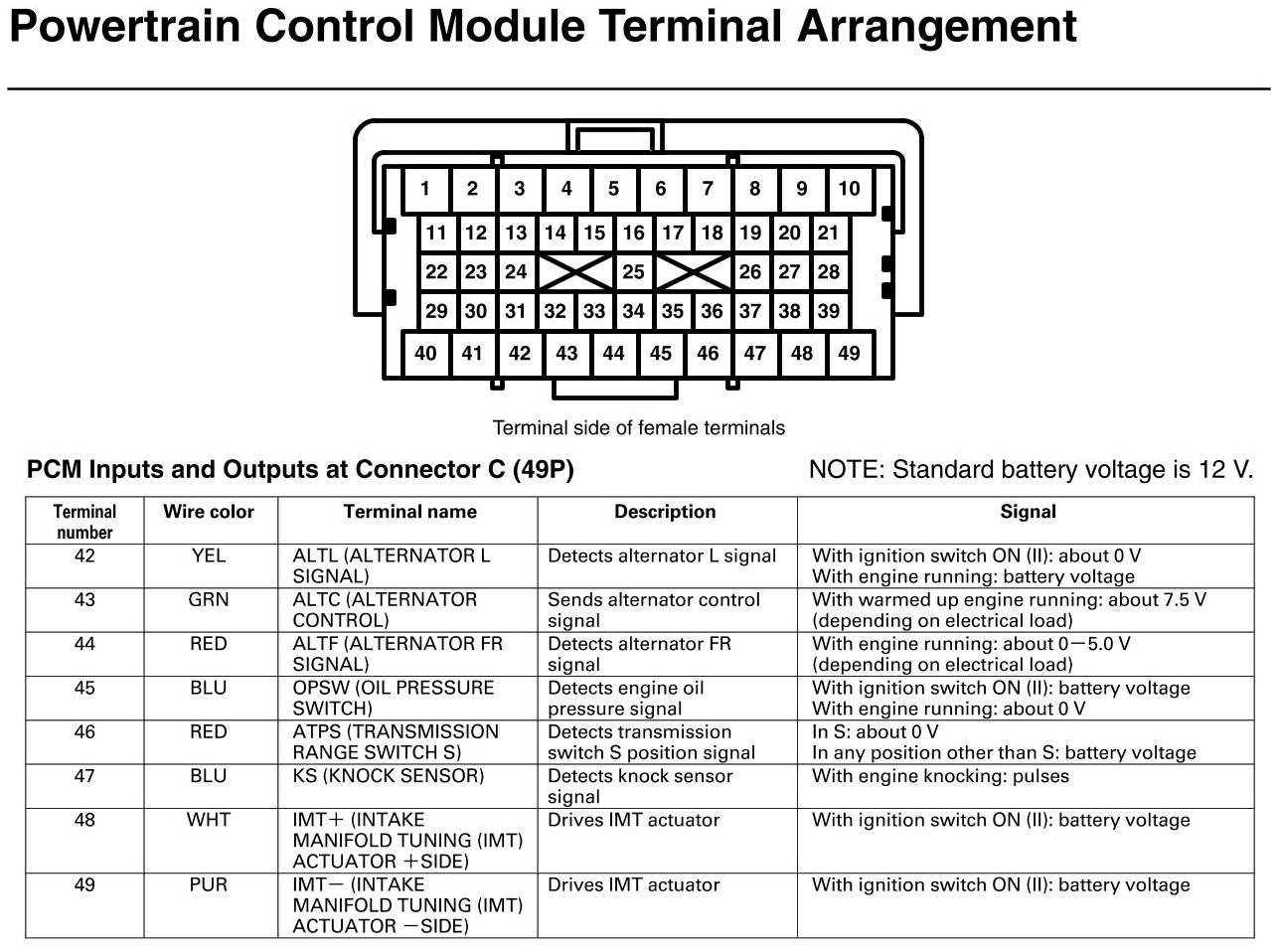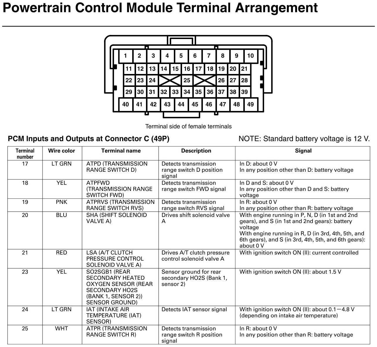 PCM Inputs and Outputs at Connector C