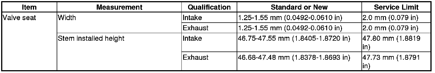 Valve Seat Specification(s)