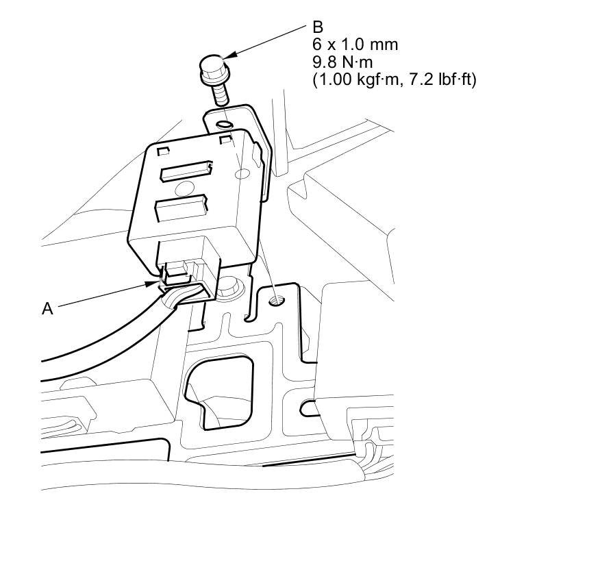 2. Disconnect the connector (A) from the ECPS control unit, and remove the bolt (B).