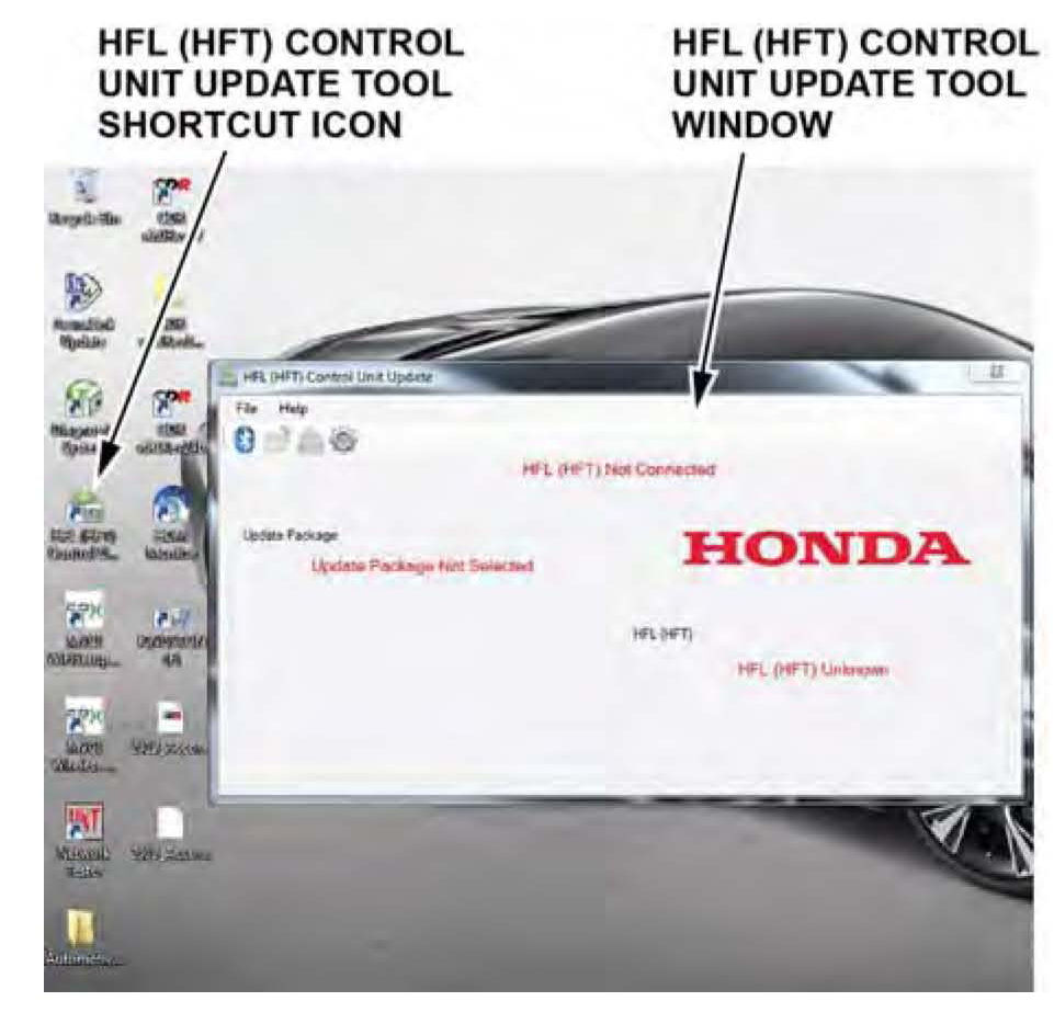 5. On the HDS laptop, double-click the HFL Control Unit Update icon to launch the Honda HFL (HFT) Control Unit Update Tool (HFL update tool).