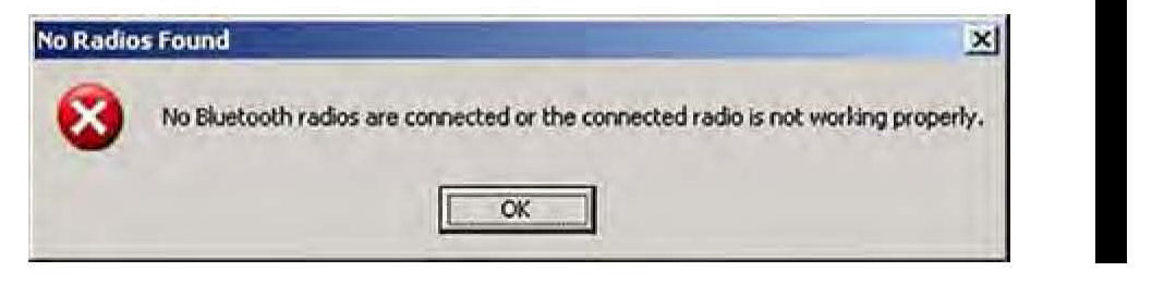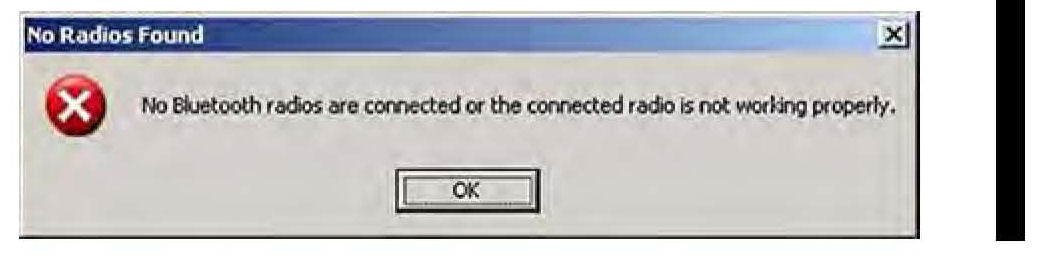 If an active Bluetooth adapter is not found on the HDS laptop, this error message will appear. Please review the REQUIRED TOOLS AND EQUIPMENT section of this publication for a recognized Bluetooth device. Contact your IT support for additional help.*