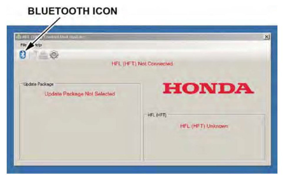 8. In the HFL update tool, click on the Bluetooth icon in the upper left-hand corner of the HFL Control Unit Update screen to prepare the HDS laptop for the pairing process with the vehicle's HFL control unit.