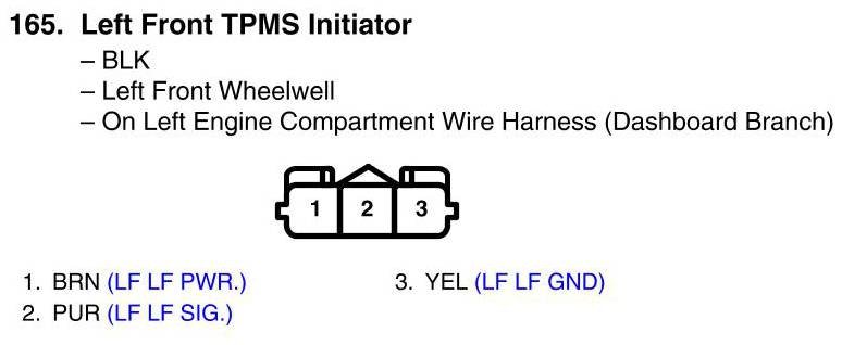 View 165 - Left Front TPMS Initiator Connector View