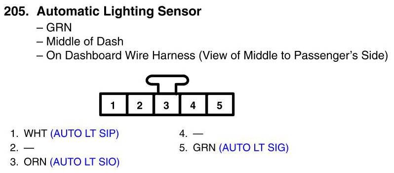 View 205 - Automatic Lighting Sensor Connector View