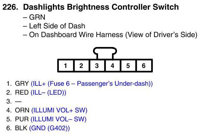 View 226 - Dashlights Brightness Controller Switch Connector View