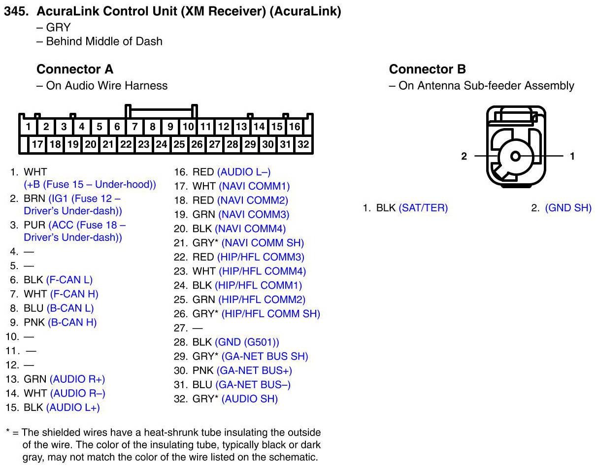 View 345 - AcuraLink Control Unit (XM Receiver) (AcuraLink) Connector View