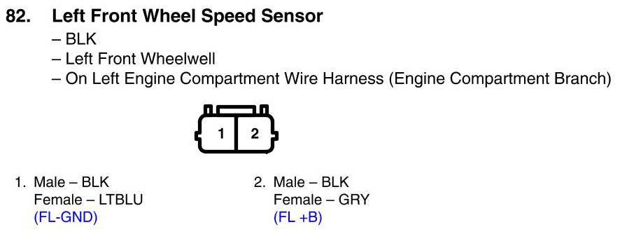 View 82 - Left Front Wheel Speed Sensor Connector View
