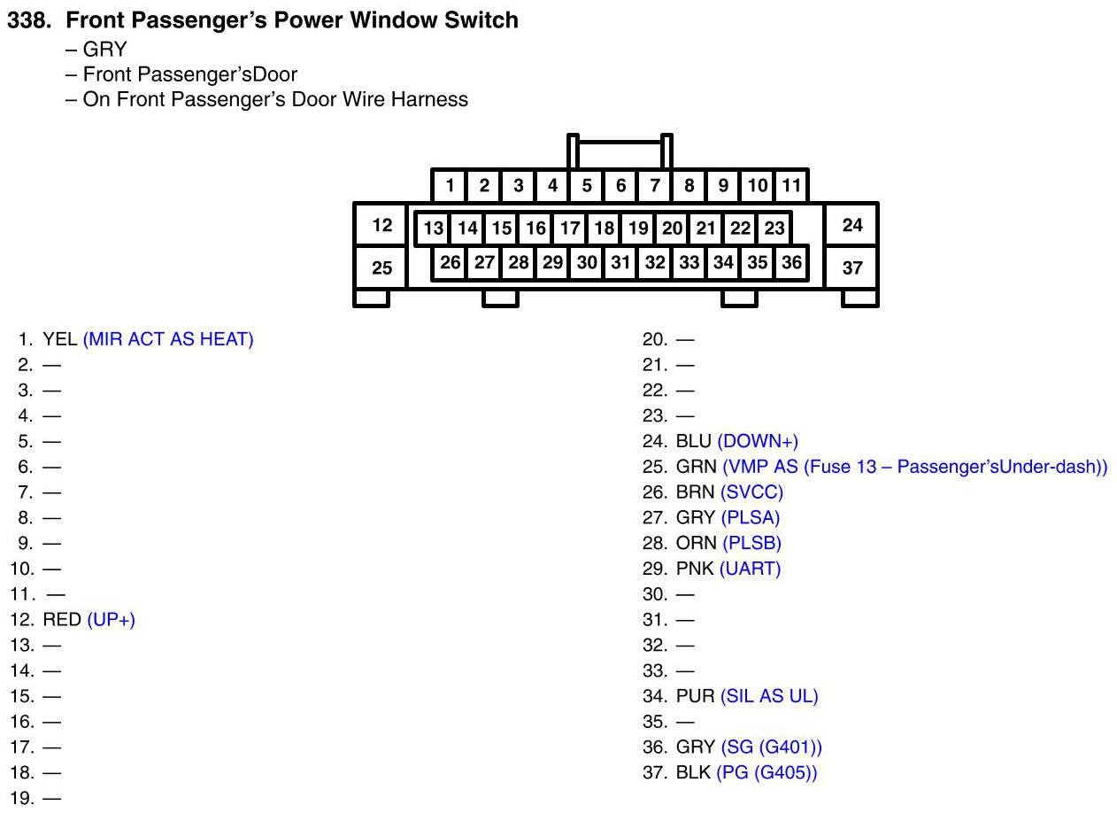 Front Passenger's Power Window Switch Connector View