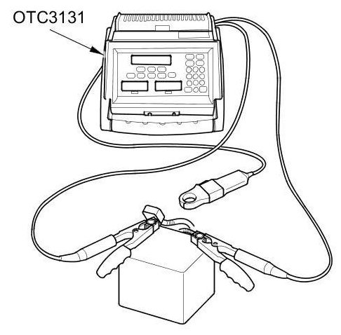 2. Connect the alternator, regulator, battery, and starter tester (OTC3131) to the battery as shown.