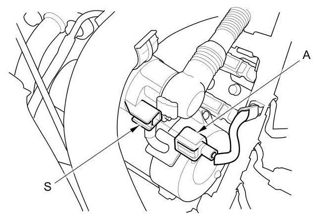 11. Make sure the shift lever is in P or N, then disconnect the connector (A) from the starter S terminal. Connect a jumper wire from the battery positive terminal to the S terminal.