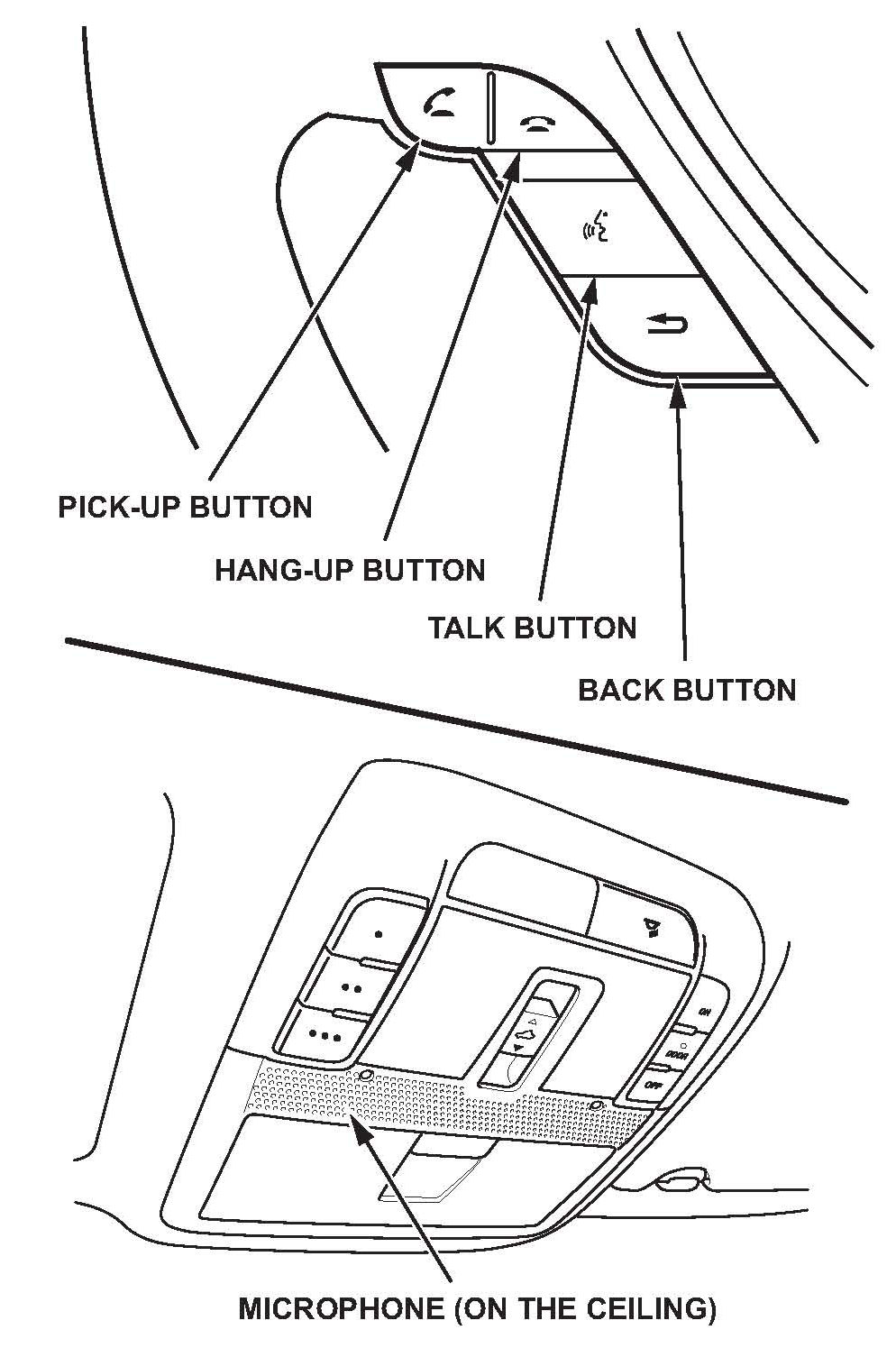 TALK button - Press and release this button on the steering wheel to activate the voice control system. After pressing and releasing the TALK button, wait for the beep, and then speak the command.