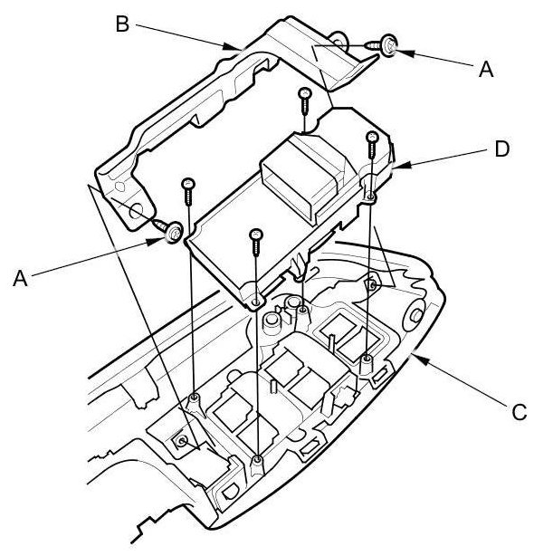 3. Remove the four screws and the power window master switch (D).