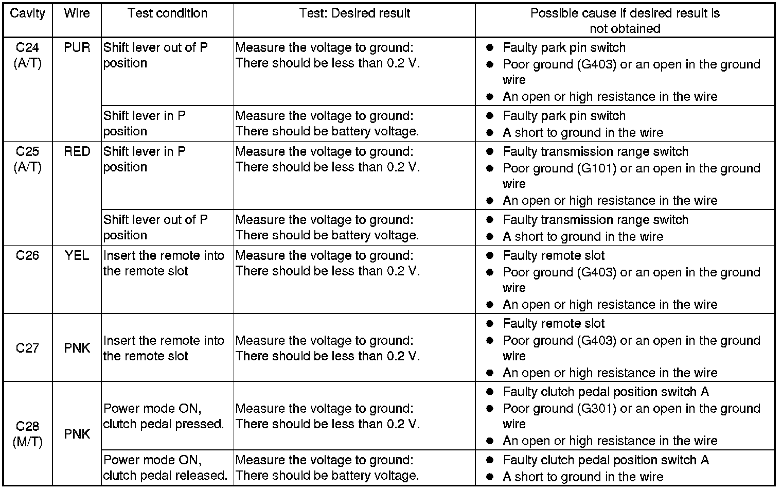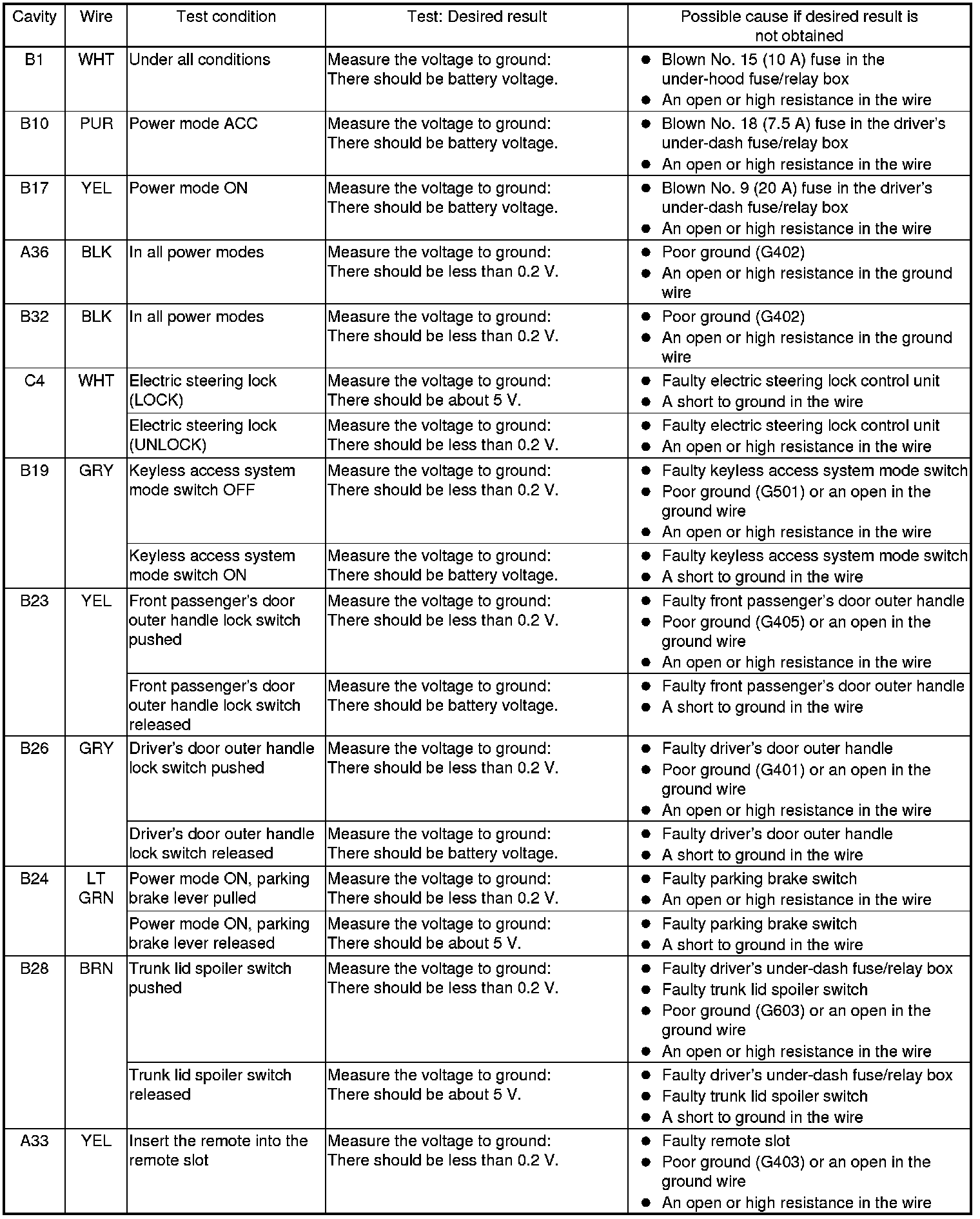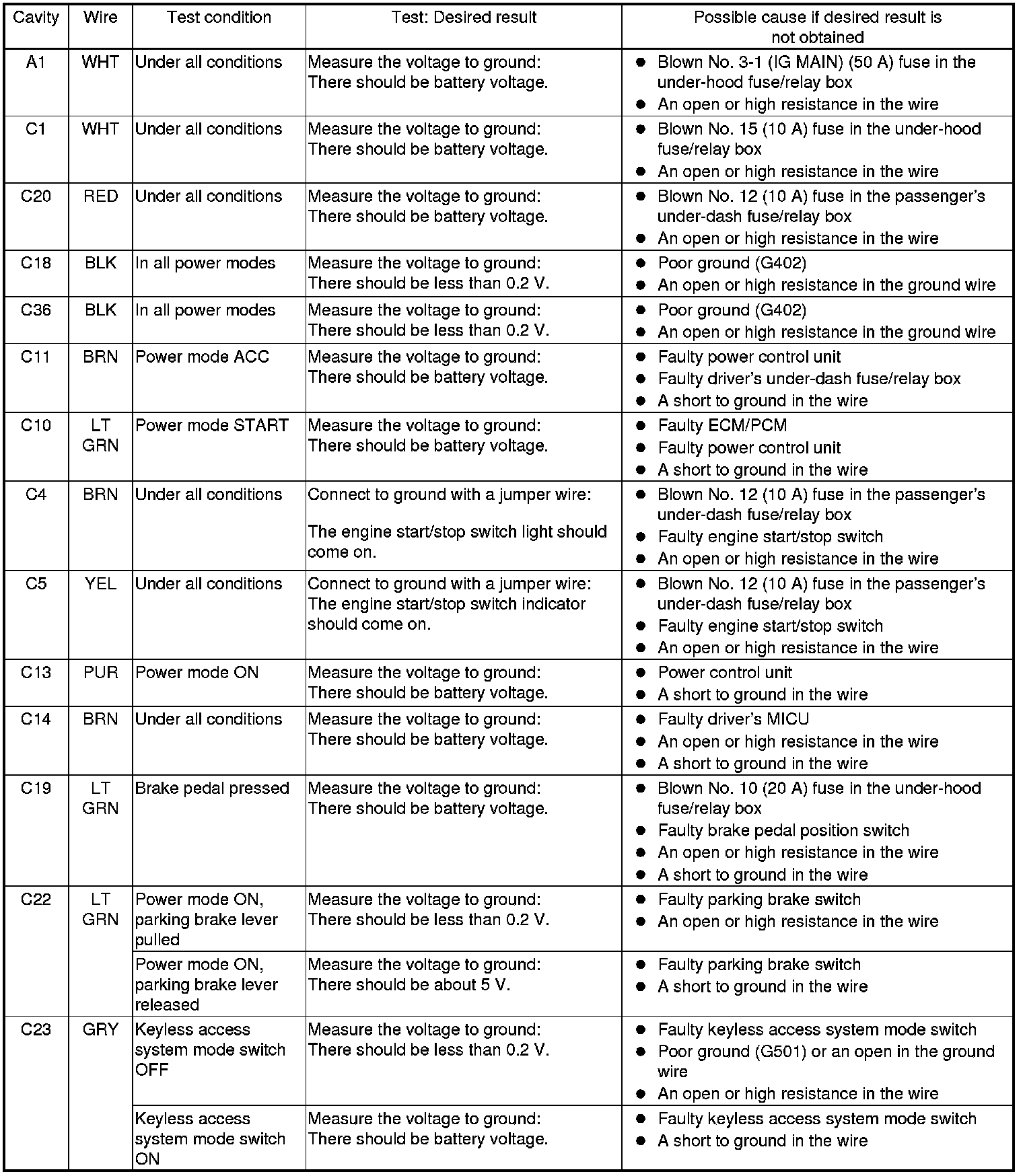 24. If multiple failures are found on more than one control unit, replace the keyless access control unit. If input failures are related to a particular control unit, replace the control unit.