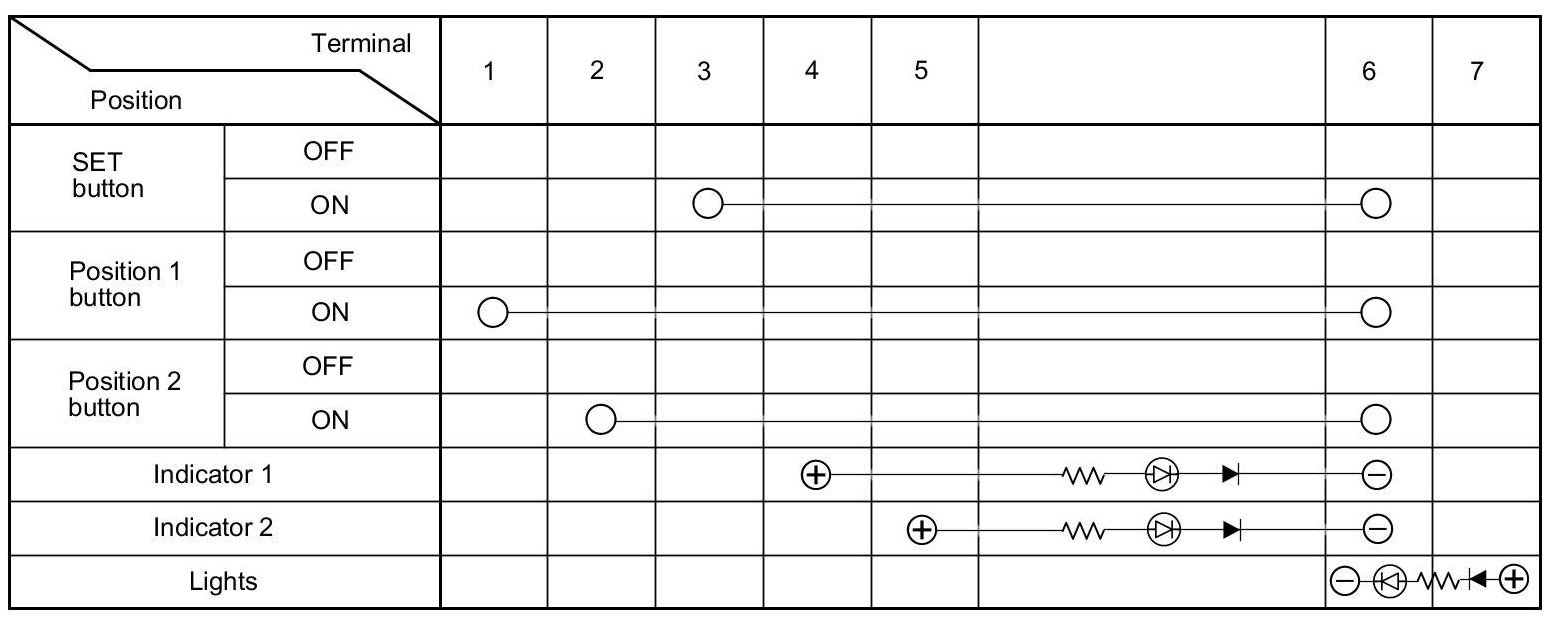 4. Check for continuity between the terminals in each switch position according to the table.
