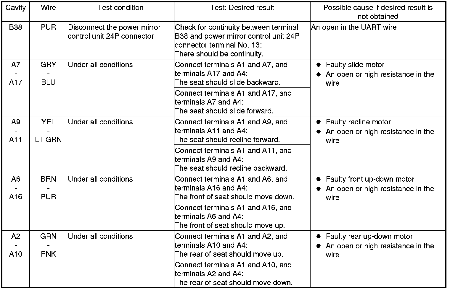 Home >> Acura >> 2012 >> TL FWD V6-3.5L >> Repair and Diagnosis >> Body and Frame >> Seats >> Power Seat Control Module >> Service and Repair >> Power Seat Control Unit Input Test/Replacement