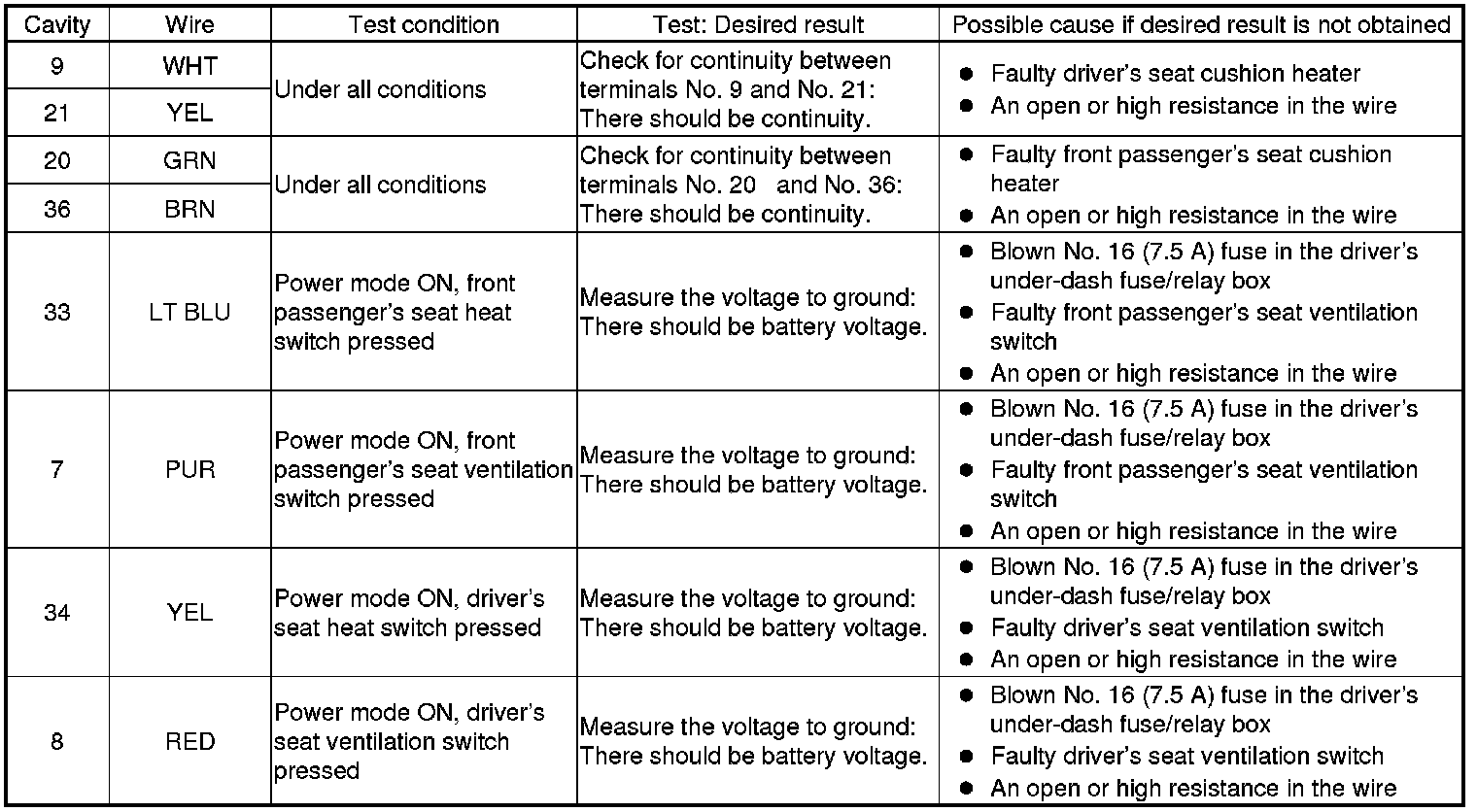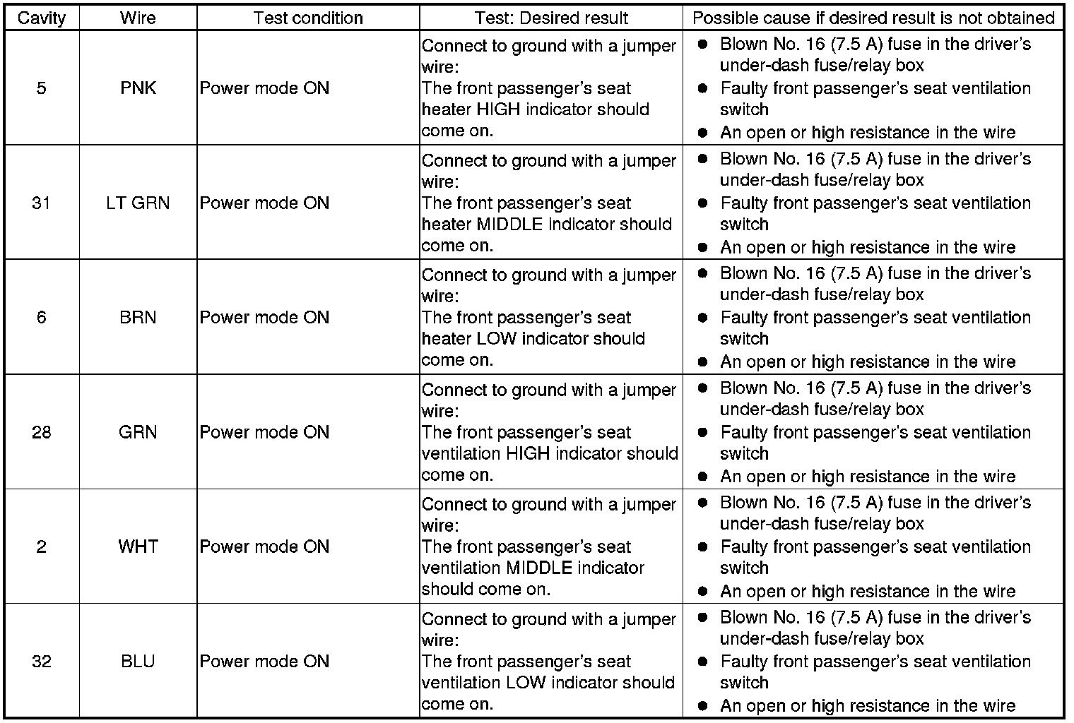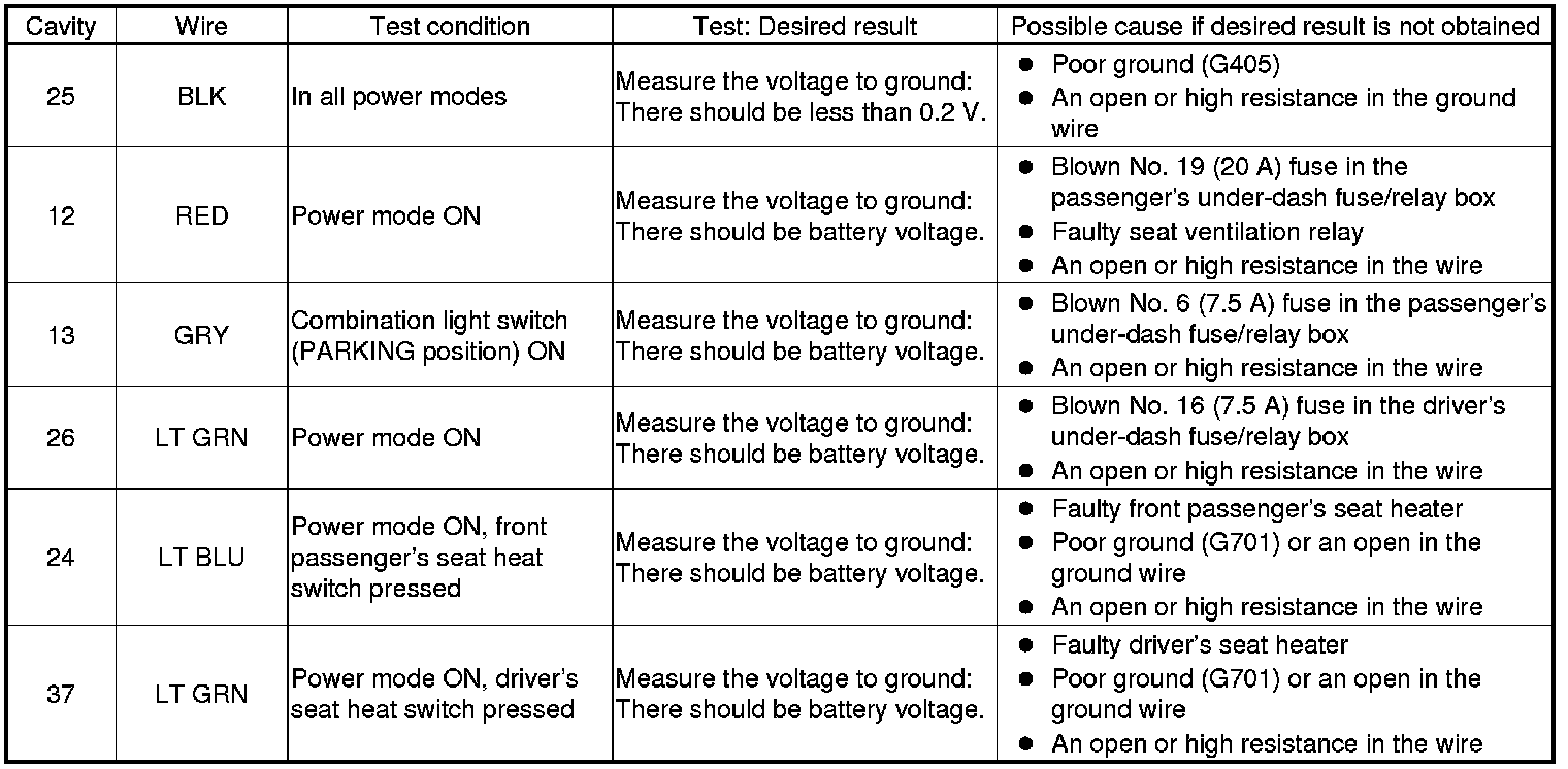 Home >> Acura >> 2012 >> TL FWD V6-3.5L >> Repair and Diagnosis >> Body and Frame >> Seats >> Power Seat Control Module >> Service and Repair >> Ventilated Seat Control Unit Input Test/Replacement