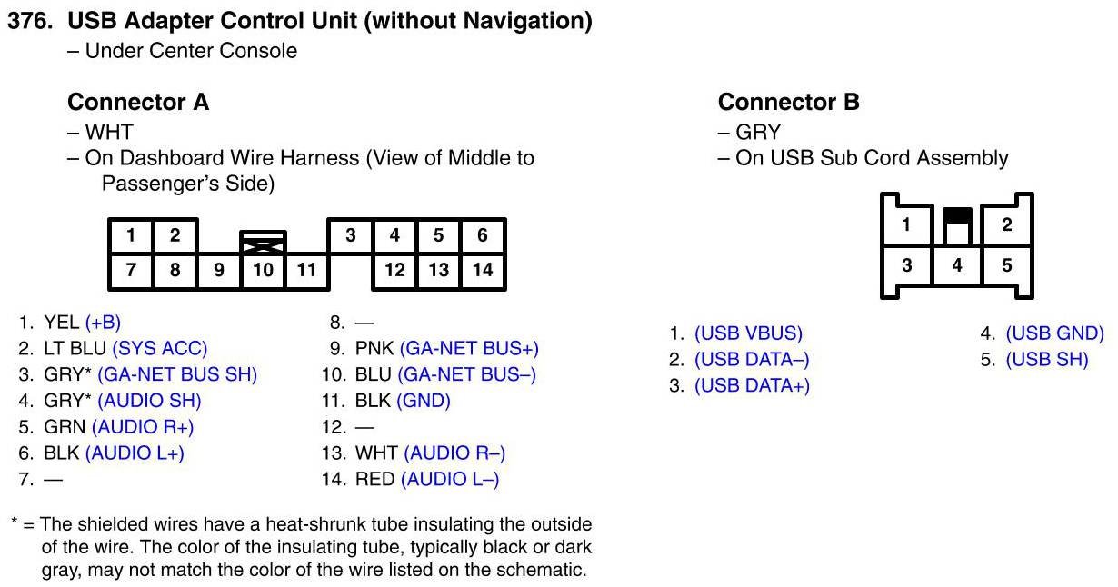 USB Adapter Control Unit (without Navigation) Connector View