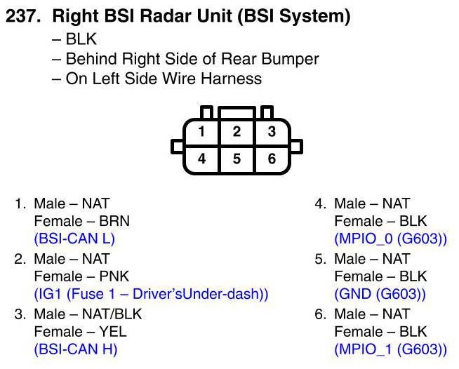 Right BSI Radar Unit (BSI System) Connector View