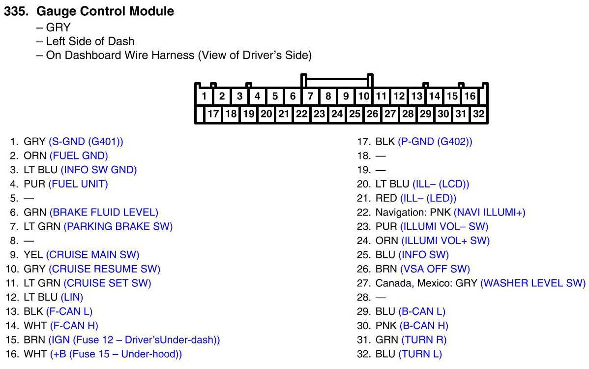 View 335 - Gauge Control Module Connector View