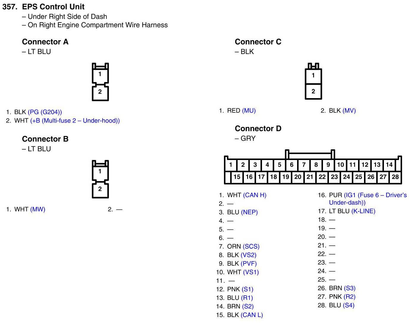 View 357 - EPS Control Unit Connector View