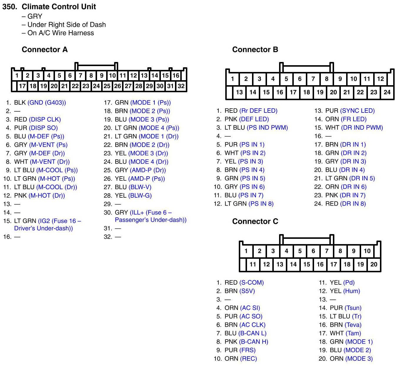 Climate Control Unit Connector View