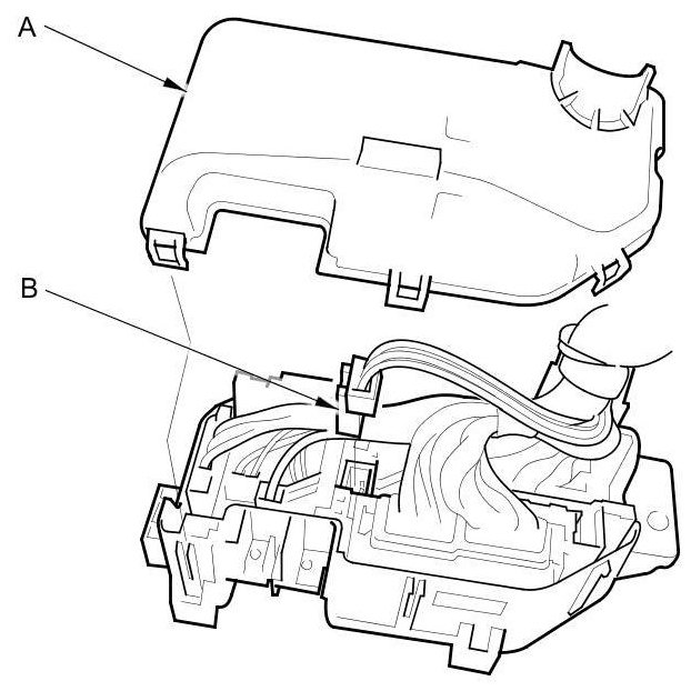 3. Remove the under-hood fuse/relay box (C) from the bracket.
