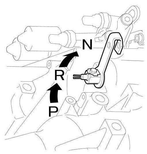NOTE: Be sure to use a 2.0 mm (0.079 in) feeler gauge blade or equivalent to hold the transmission range switch in the N position.