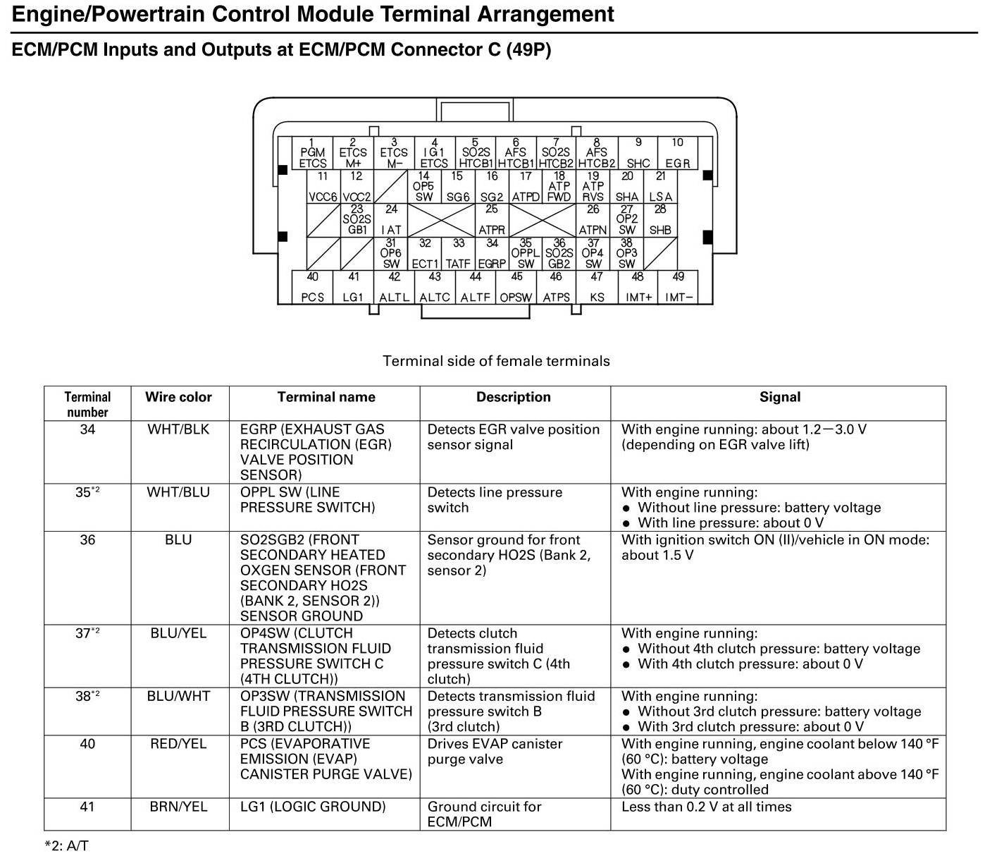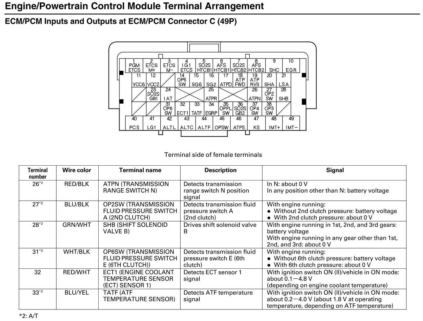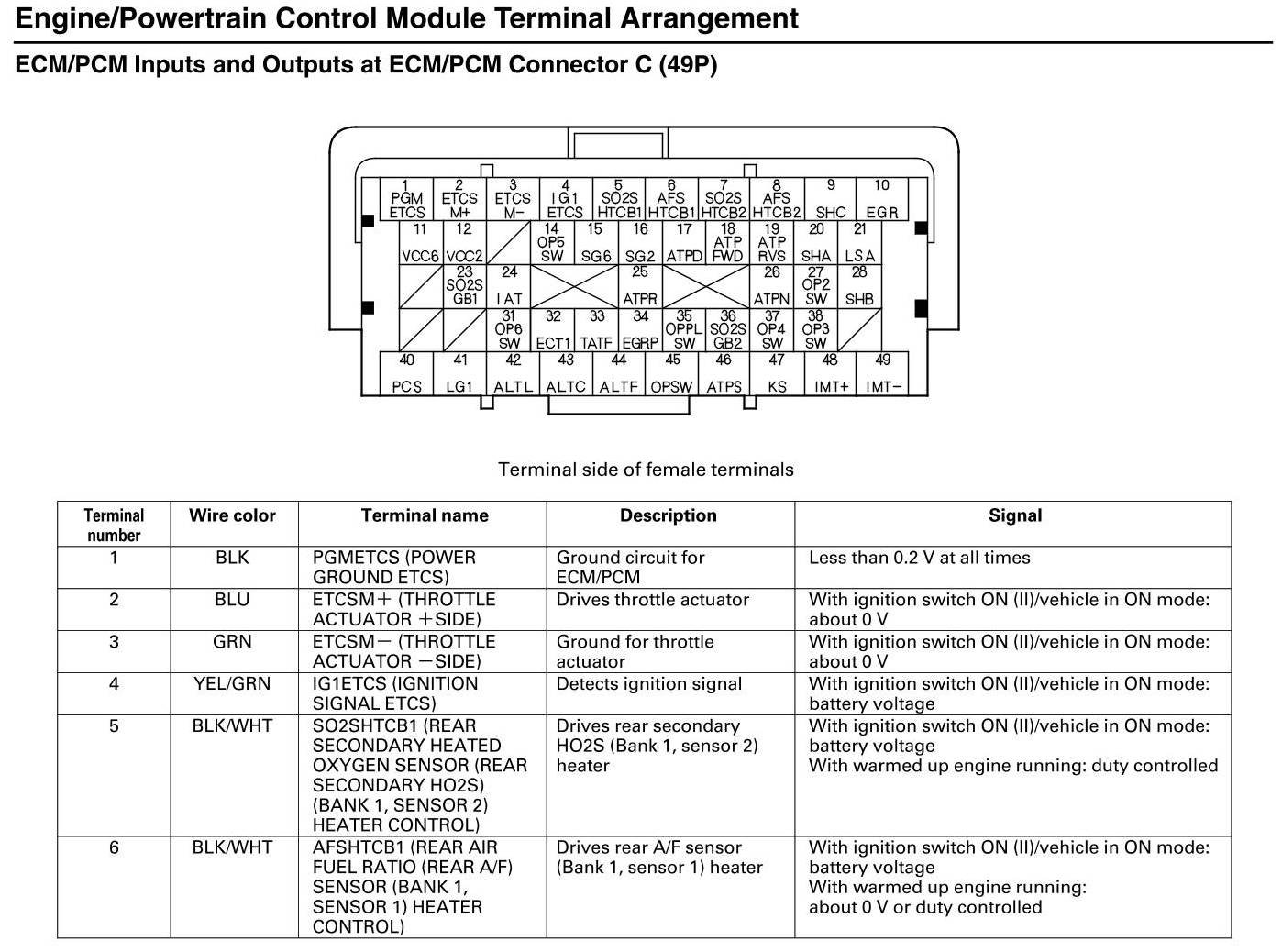 ECM/PCM Inputs and Outputs at Connector C