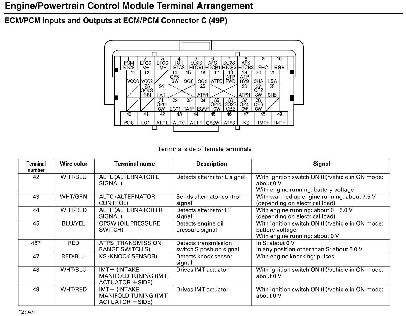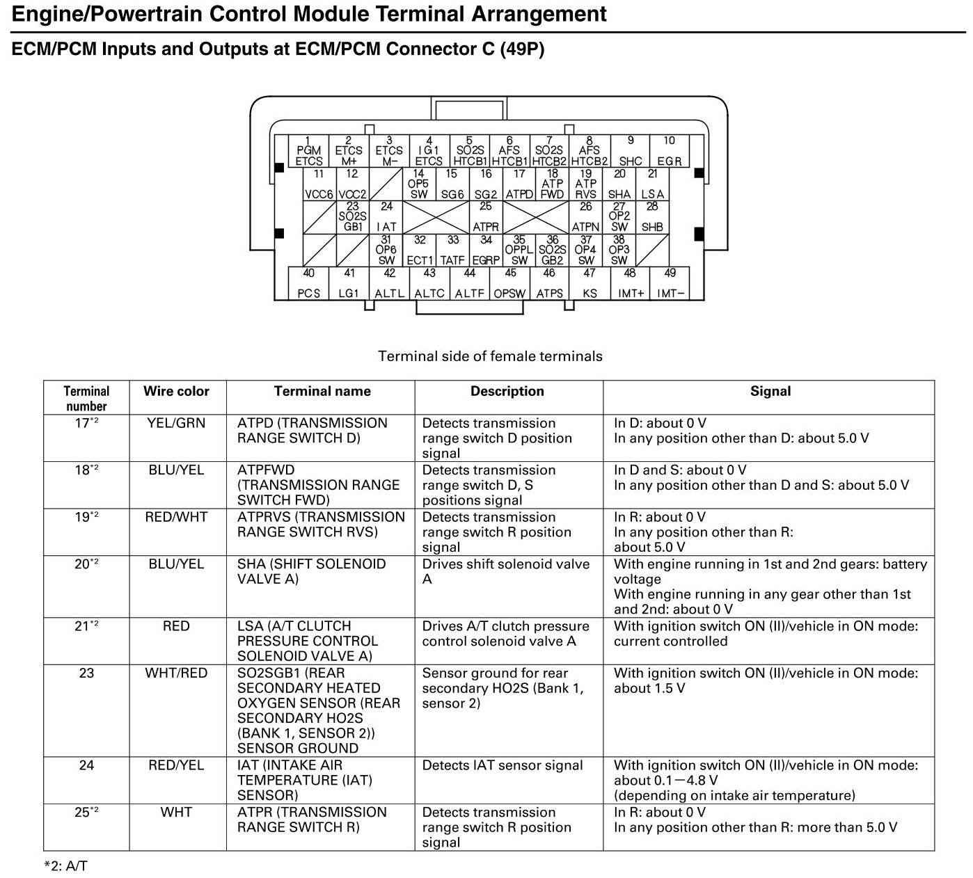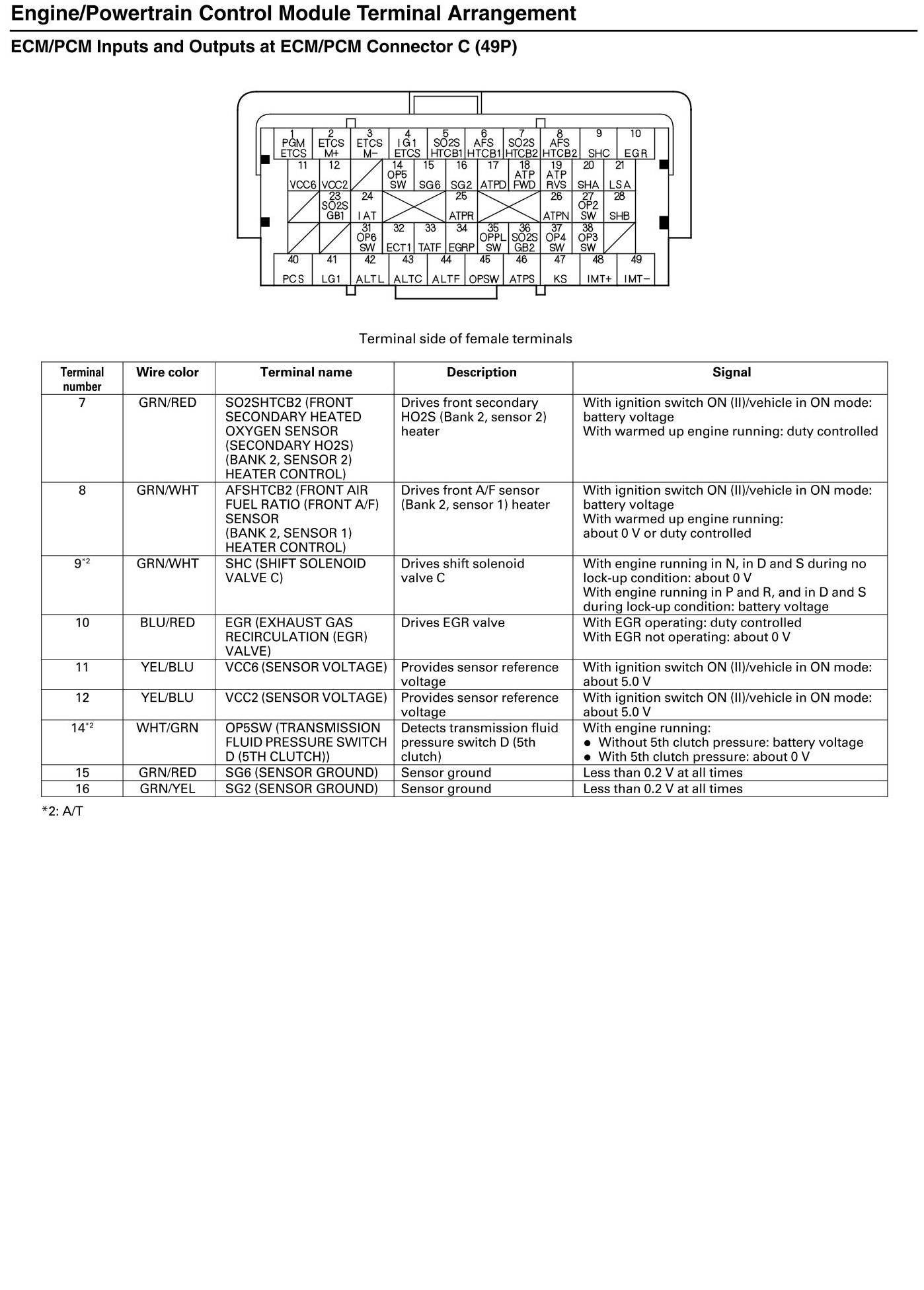 ECM/PCM Inputs and Outputs at Connector C