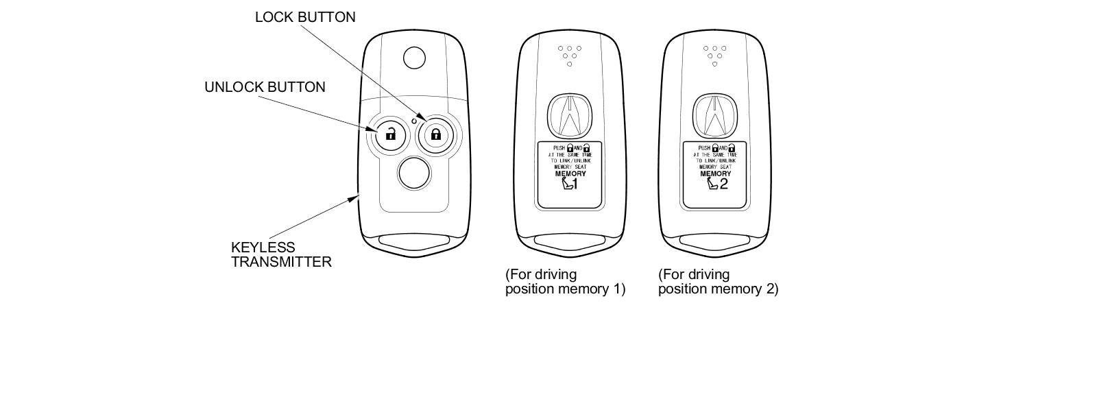 Make sure that the remotes are LINKED. Press and hold the LOCK and UNLOCK button at the same time. The red LED on the remote will flash ONE time when the remote has been LINKED and will flash TWO times when the remote has been UNLINKED. After the seat position has been memorized, the seat move to the position when the appropriate remote UNLOCK button is pressed and the driver's door is opened. When the seat gets to the memorized position, the green LED corresponding with that remote stays lit until the position is changed or the key is turned to LOCK (0).