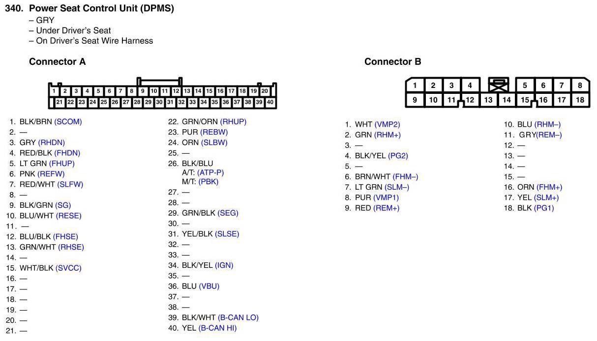 View 340 - Power Seat Control Unit Connector View (DPMS)