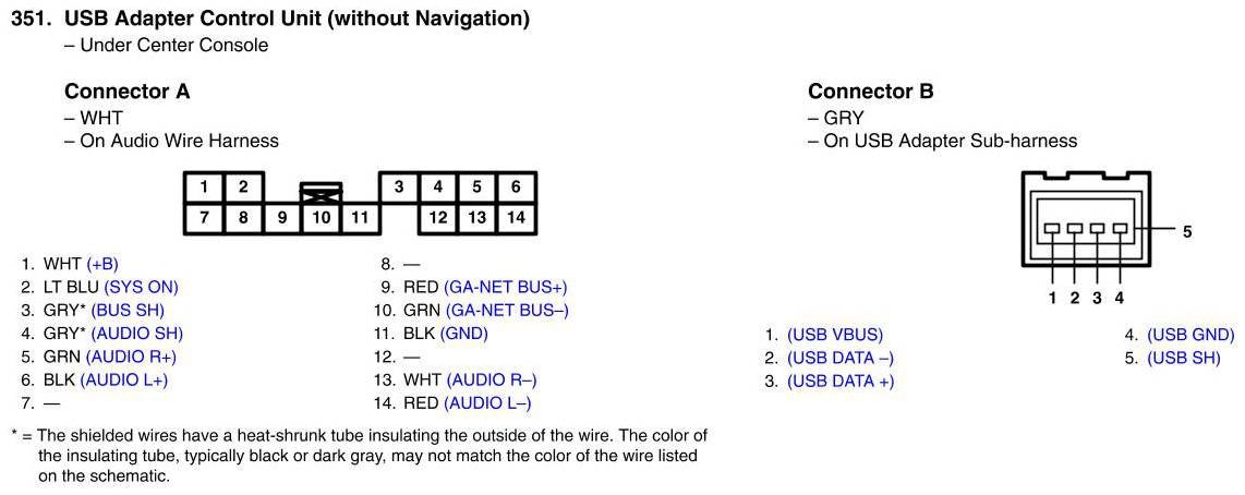 View 351 - USB Adapter Control Unit Connector View (without Navigation)