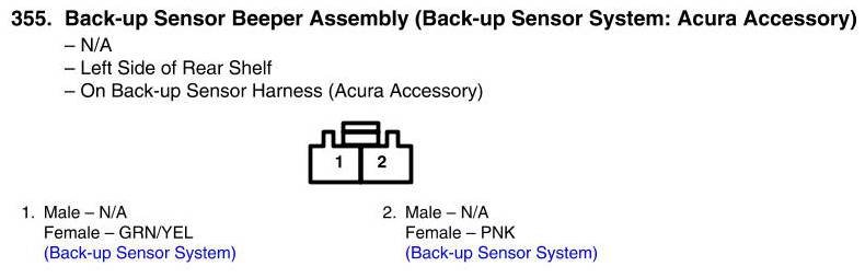 View 355 - Back-up Sensor Beeper Assembly Connector View (Back-up Sensor System: Acura Accessory)
