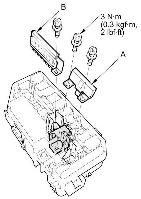 3. Remove the under-hood fuse/relay box (C) from the bracket.