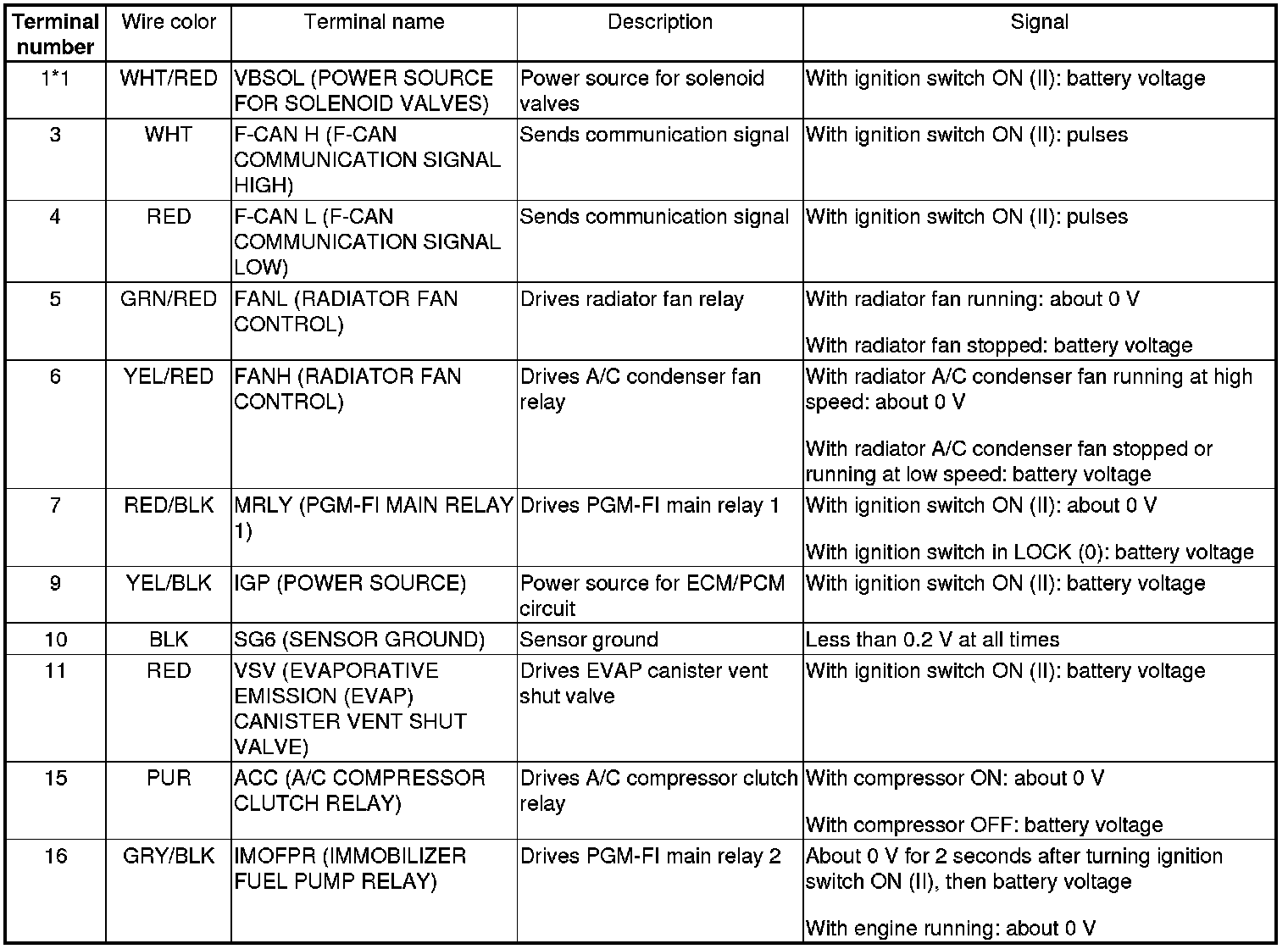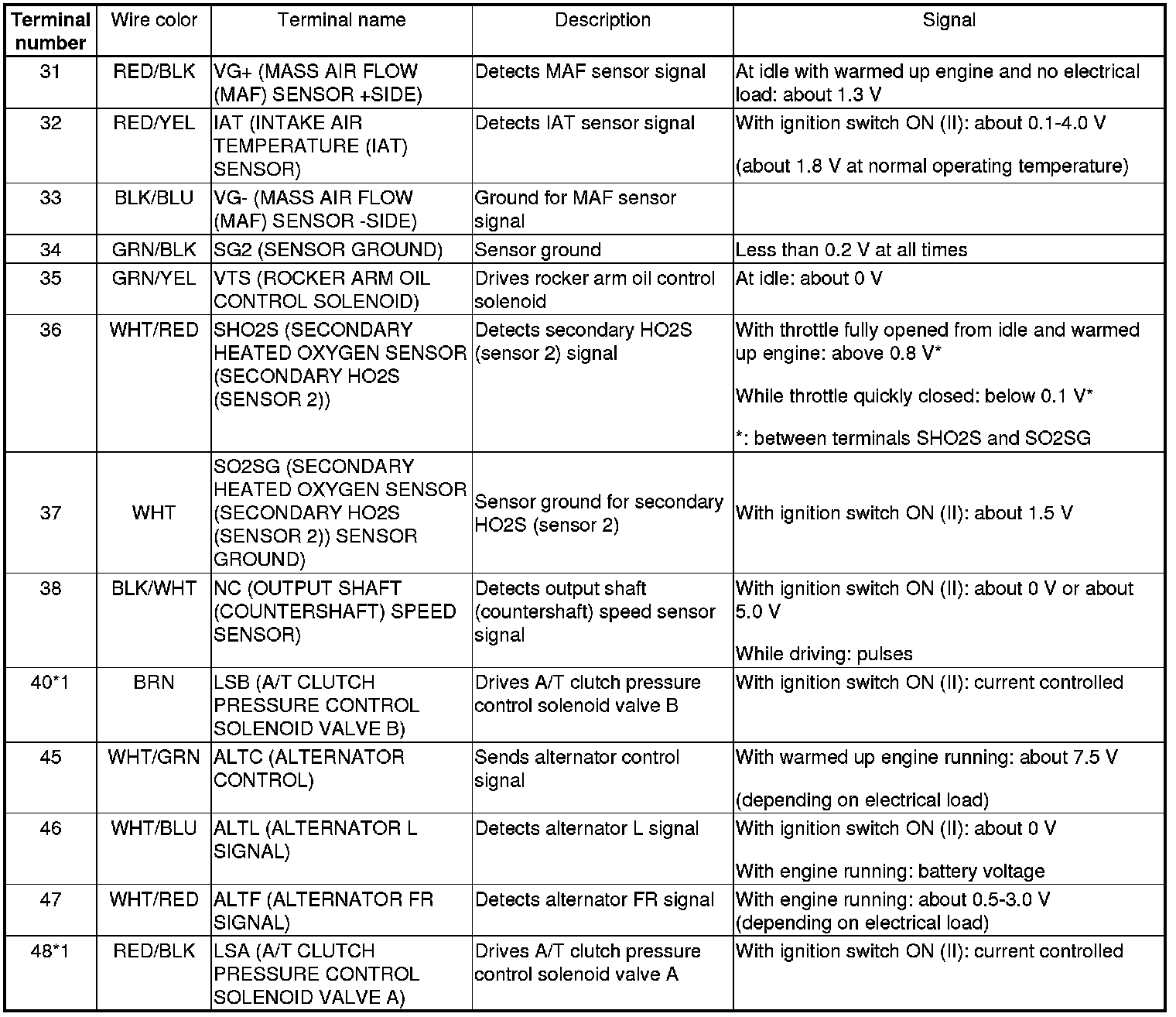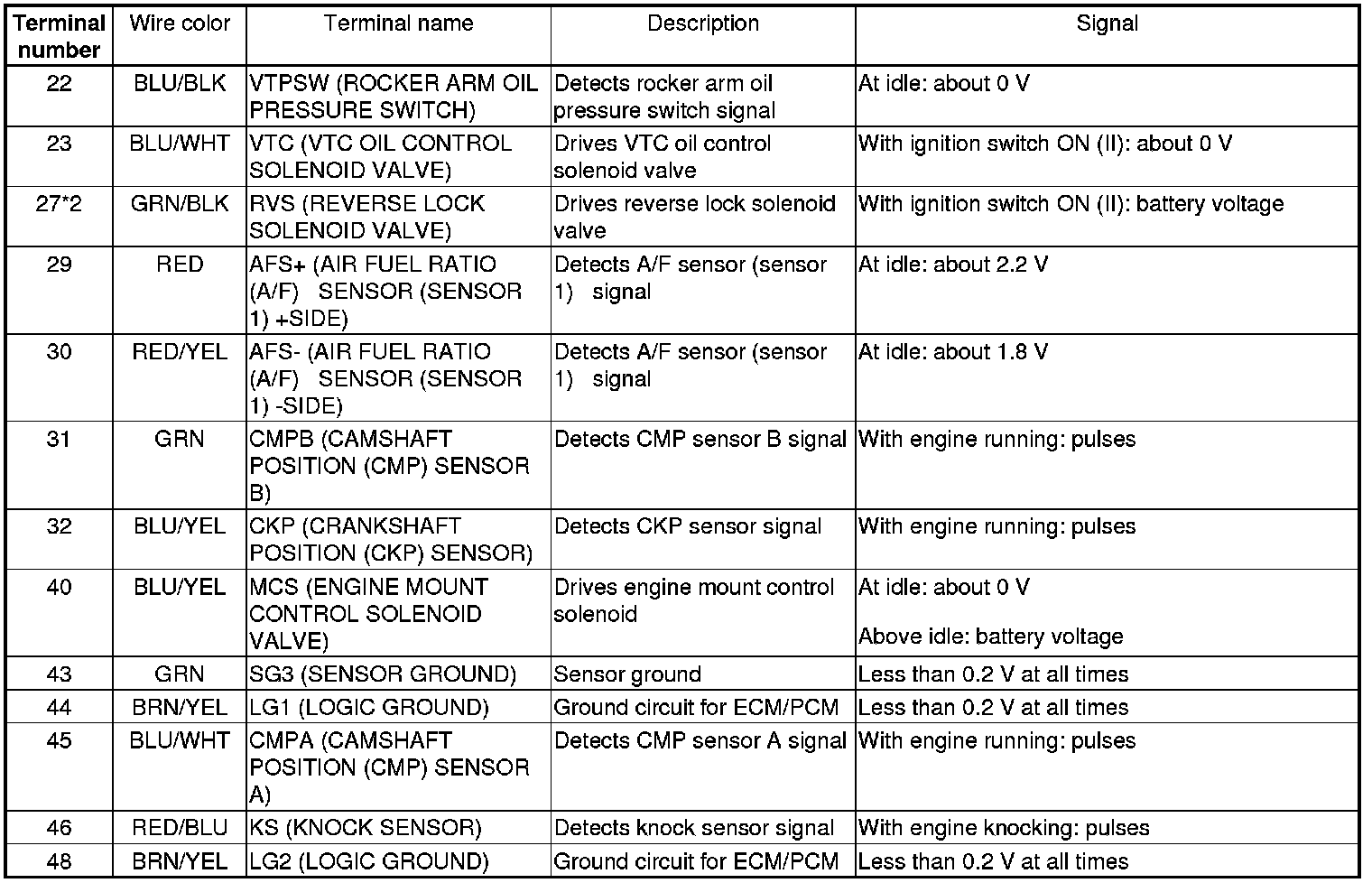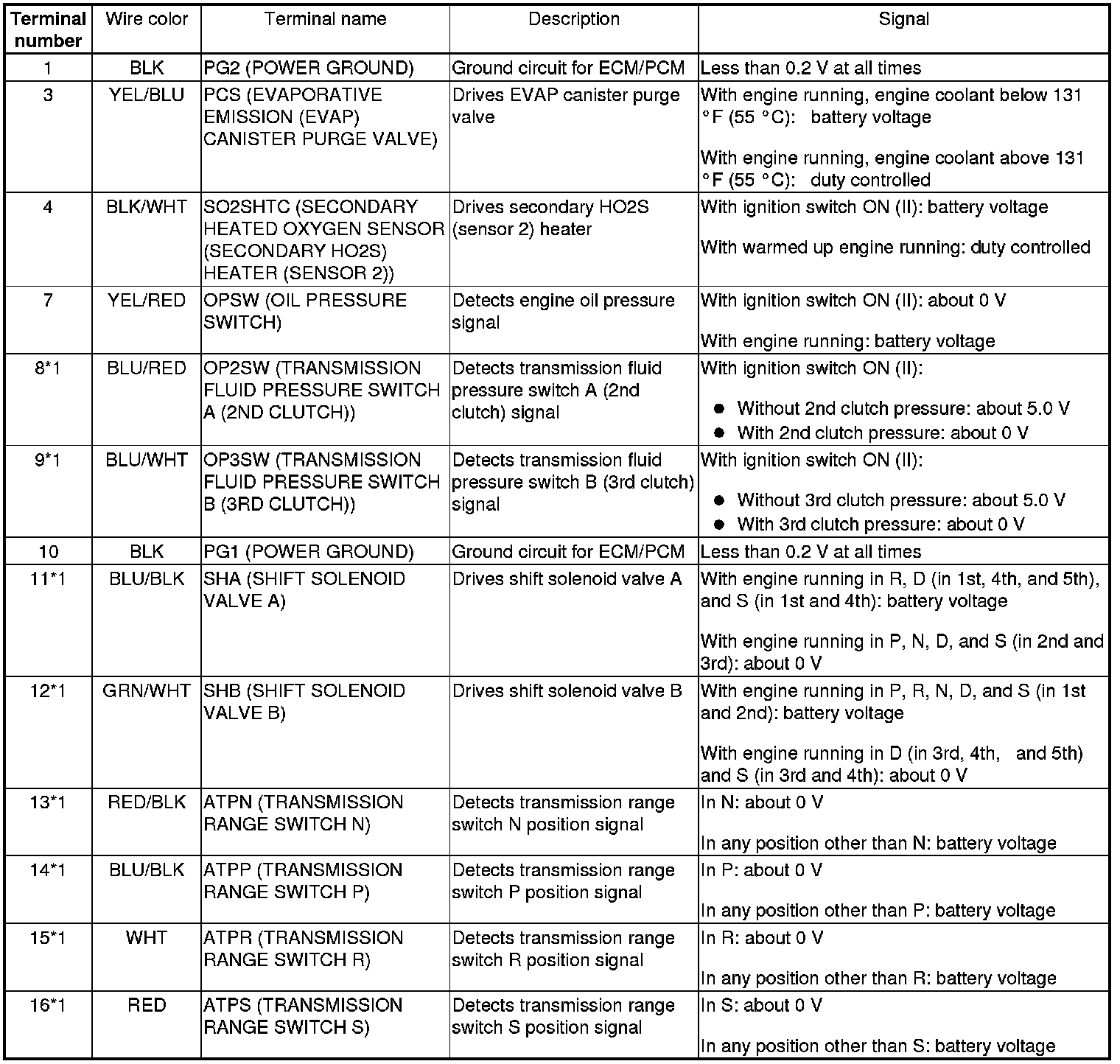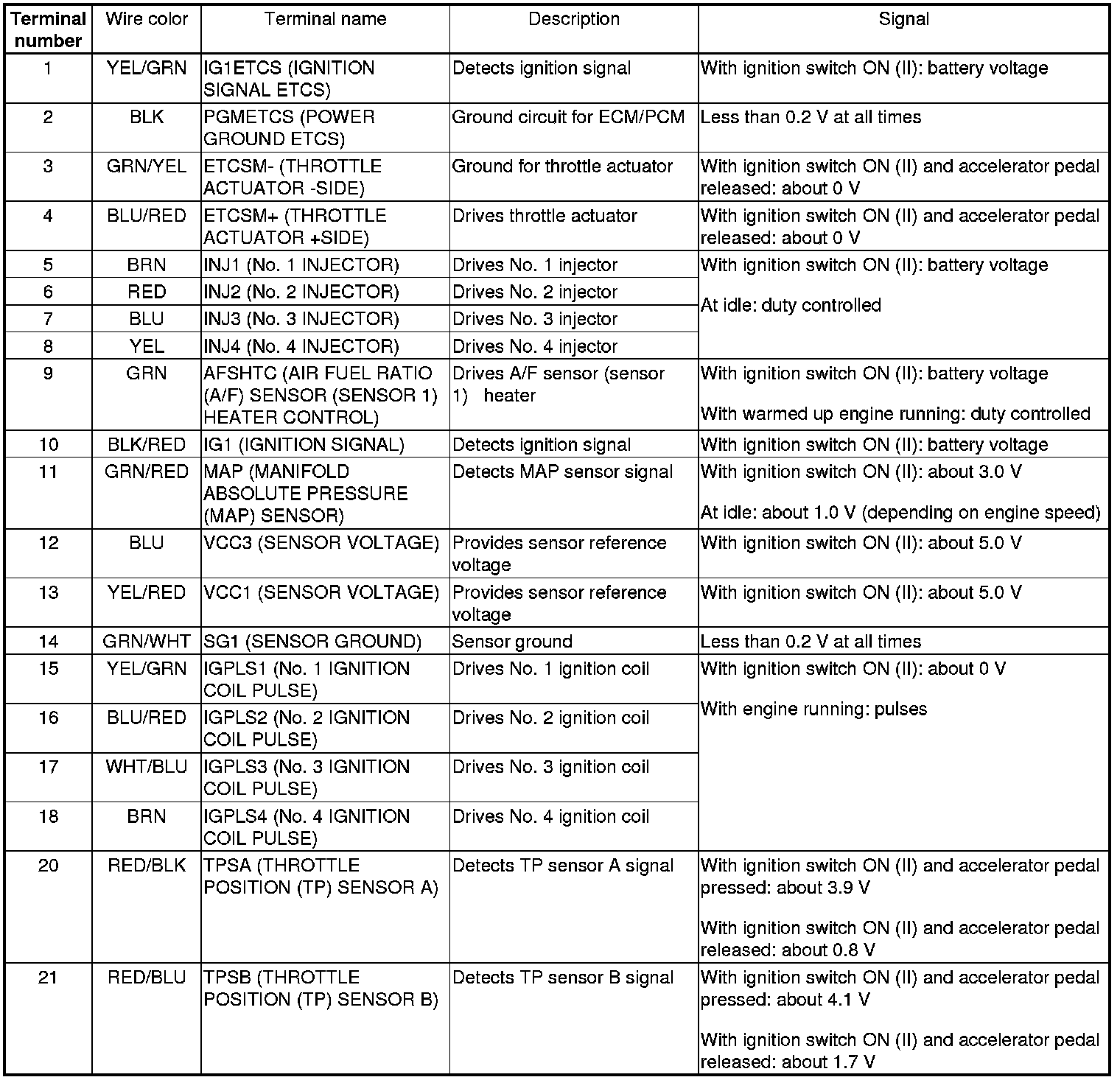ECM/PCM Inputs and Outputs at ECM/PCM Connector A (square) (49P)