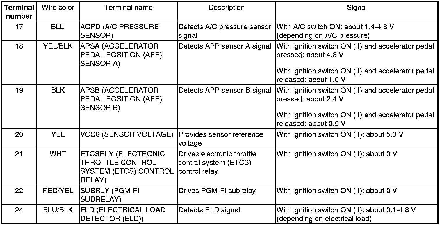 ECM/PCM Inputs and Outputs at ECM/PCM Connector C (circle) (49P)