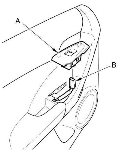 1. Carefully remove the rear power window switch (A).