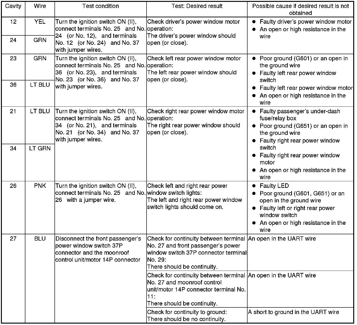 NOTE: Before testing, troubleshoot the multiplex integrated control unit first, using B-CAN System Diagnosis Test Mode A Troubleshooting - B-CAN System Diagnosis Test Mode A.