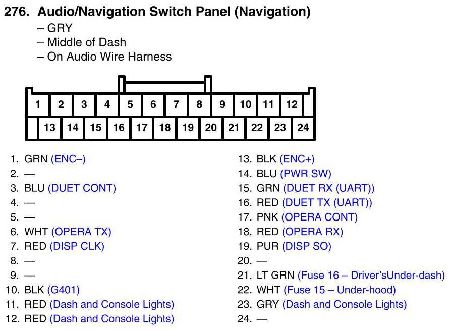 View 276 - Audio/Navigation Switch Panel Connector View (Navigation)