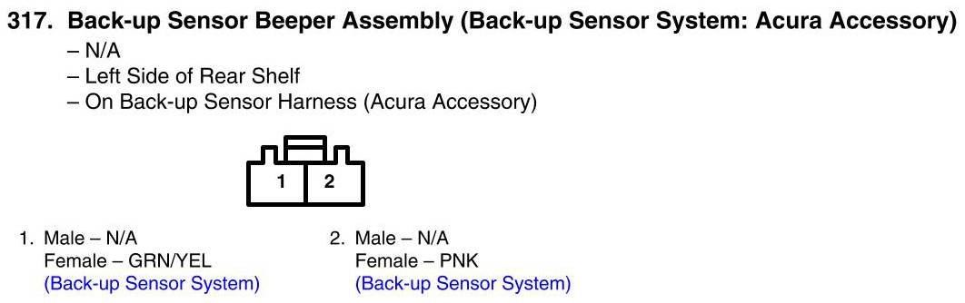 View 317 - Back-Up Sensor Beeper Assembly Connector View (Back-up Sensor System: Acura Accessory)