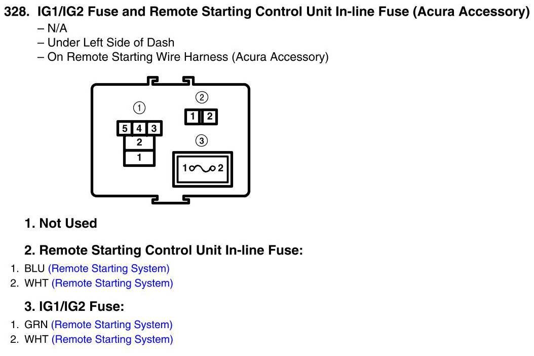 IG1/IG2 Fuse And Remote Starting Control Unit In-line Fuse Connector View (Acura Accessory)