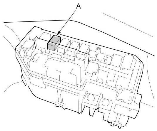 46. Remove the driver's dashboard lower cover Driver's Dashboard Lower Cover Removal / Installation, then remove PGM-FI main relay 2 (A) from the driver's under-dash fuse/relay box.