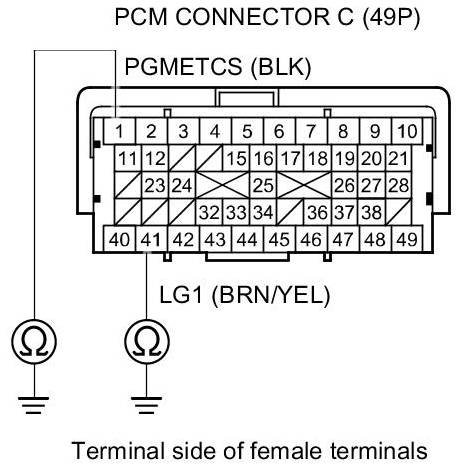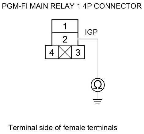 40. Check for continuity between body ground and PGM-FI main relay 1 4P connector terminals No. 1 and No. 4 individually.